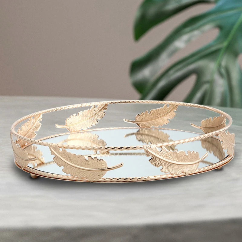Гладкий Круглый зеркальный поднос Очень легко чистить. Протрите поверхность влажной тканью при необходимости. Не подходит для посудомоечных машин, печей или микроволновых печей.
