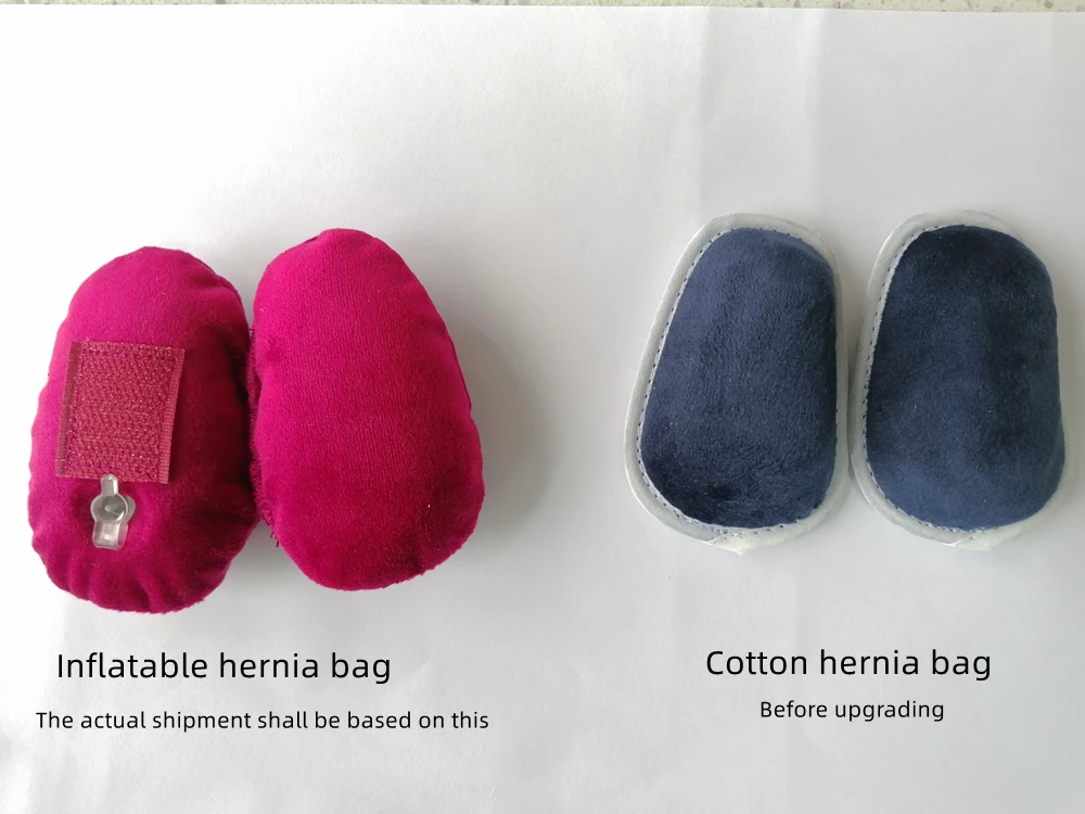 Due to product improvements, we have changed the hernia bag to an inflatable bag, making it easier to adjust its position. We default to sending inflatable bags when shipping, and the actual product images have been changed as follows:
