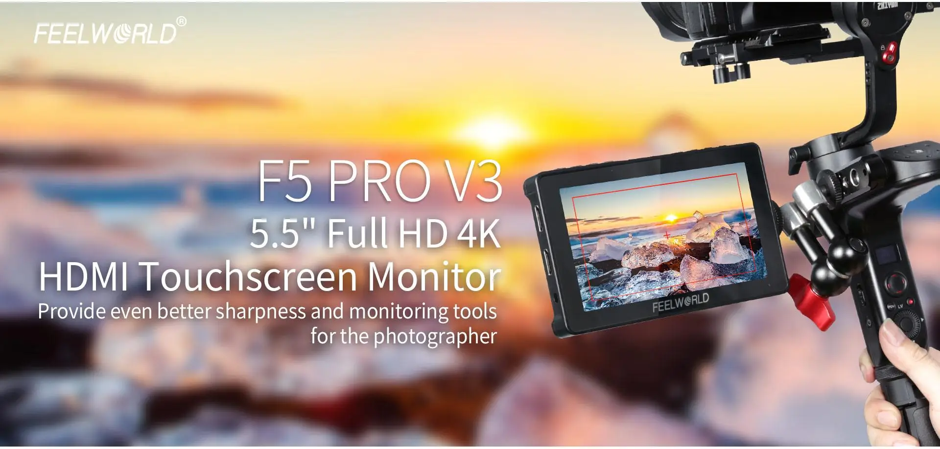 Монитор F5 Pro V2 оснащен солнцезащитным абажуром, что позволяет фотографу больше фокусироваться на видео и избегать помех, создающих сильный светильник, обеспечивая лучший визуальный опыт. Процесс установки прост и быстрый, что очень подходит для съемки на открытом воздухе.