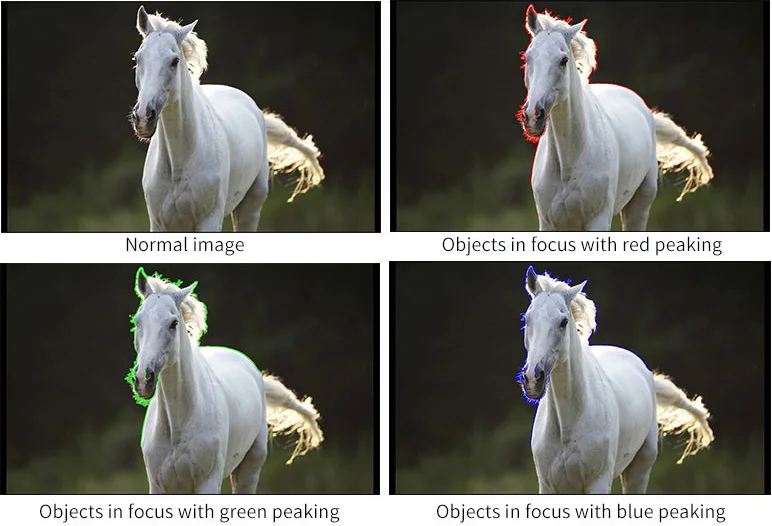 Le picture. При активации внутренний процессор отобразит цветную подсветку на экране, где появляются острые края. Вы можете переключить цвет линии между красным, зеленым, синим в зависимости от тона предмета.