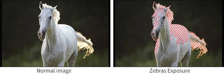 Воздействие используется для помощи в регулировке экспозиции в режиме рисунка зебры. Он считается чрезмерным и отображает движущиеся предупреждающие линии на открытые области. 1-100IRE регулируемый.