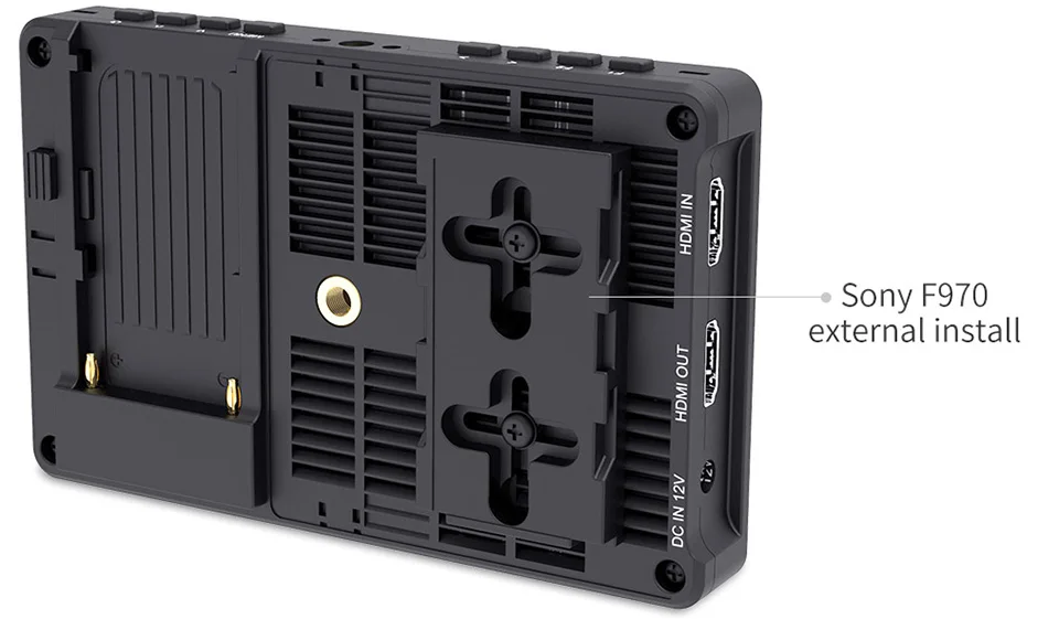 Внешняя установка Sony F970 и дизайн комплекта питания добавляются к задней части монитора. Внешний комплект может использоваться для установки и установки внешнего оборудования, такого как беспроводной передатчик, светодиодный светильник, видеоконвертер и другие устройства, которые могут питаться от аккумулятора Sony F970. Эта инновационная конструкция внешнего источника питания уменьшает необходимость подключения фотографов к внешней беспроводной передаче, светодиодный светильник и другое оборудование, значительно экономя пространство, занимаемое оборудованием, и уменьшая вес фотографического оборудования.