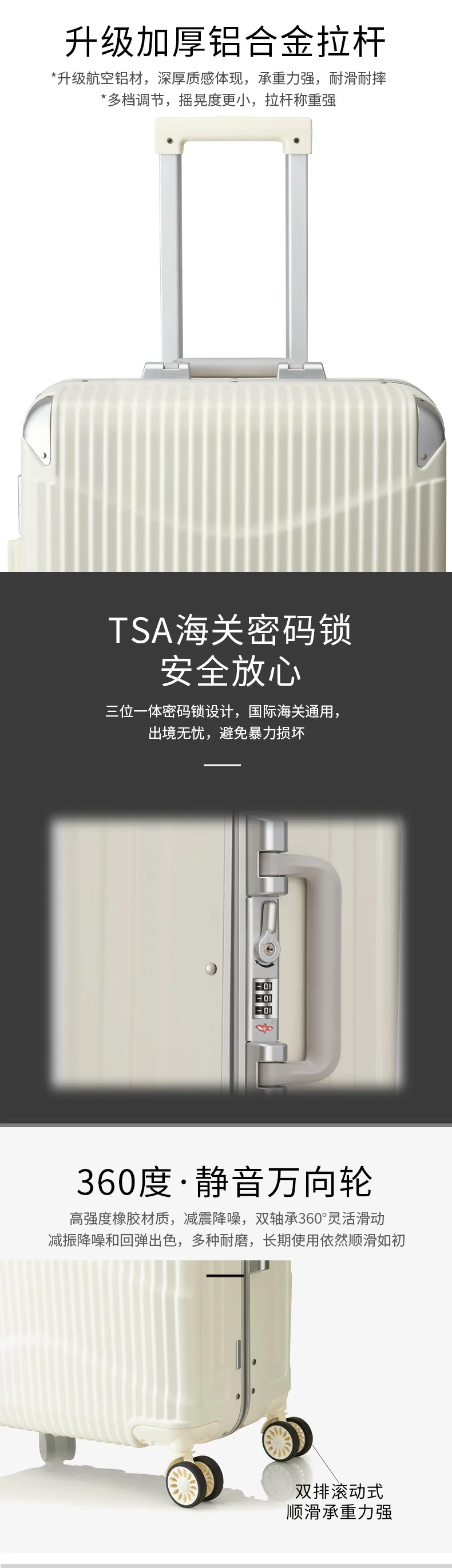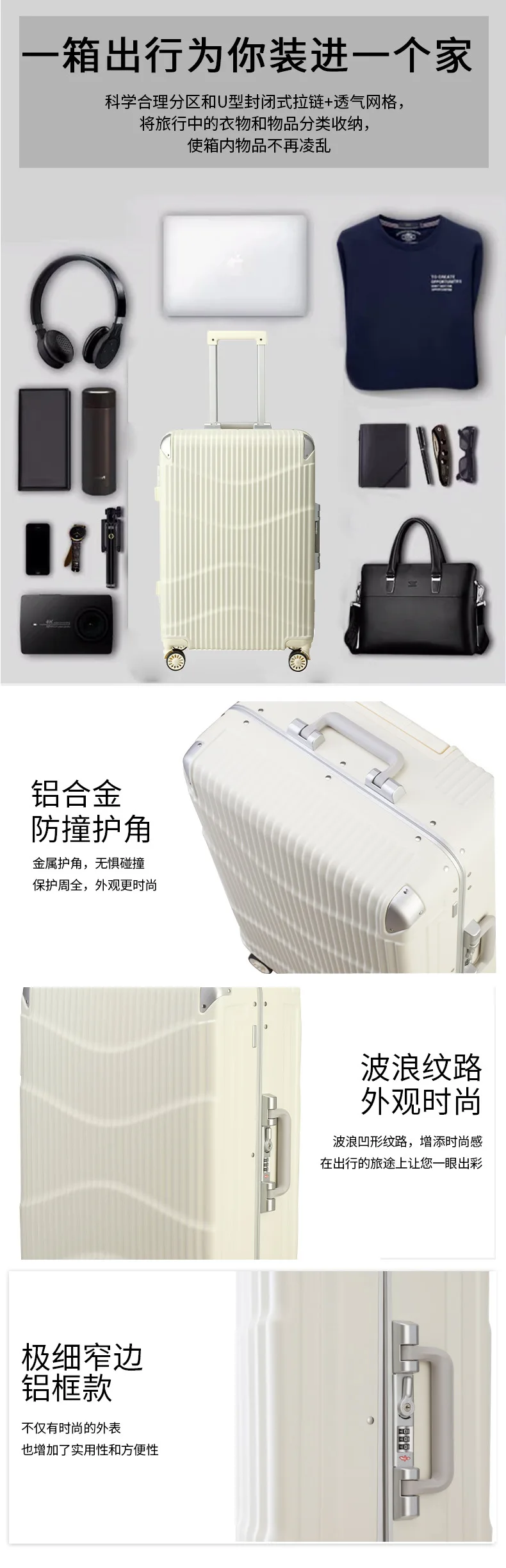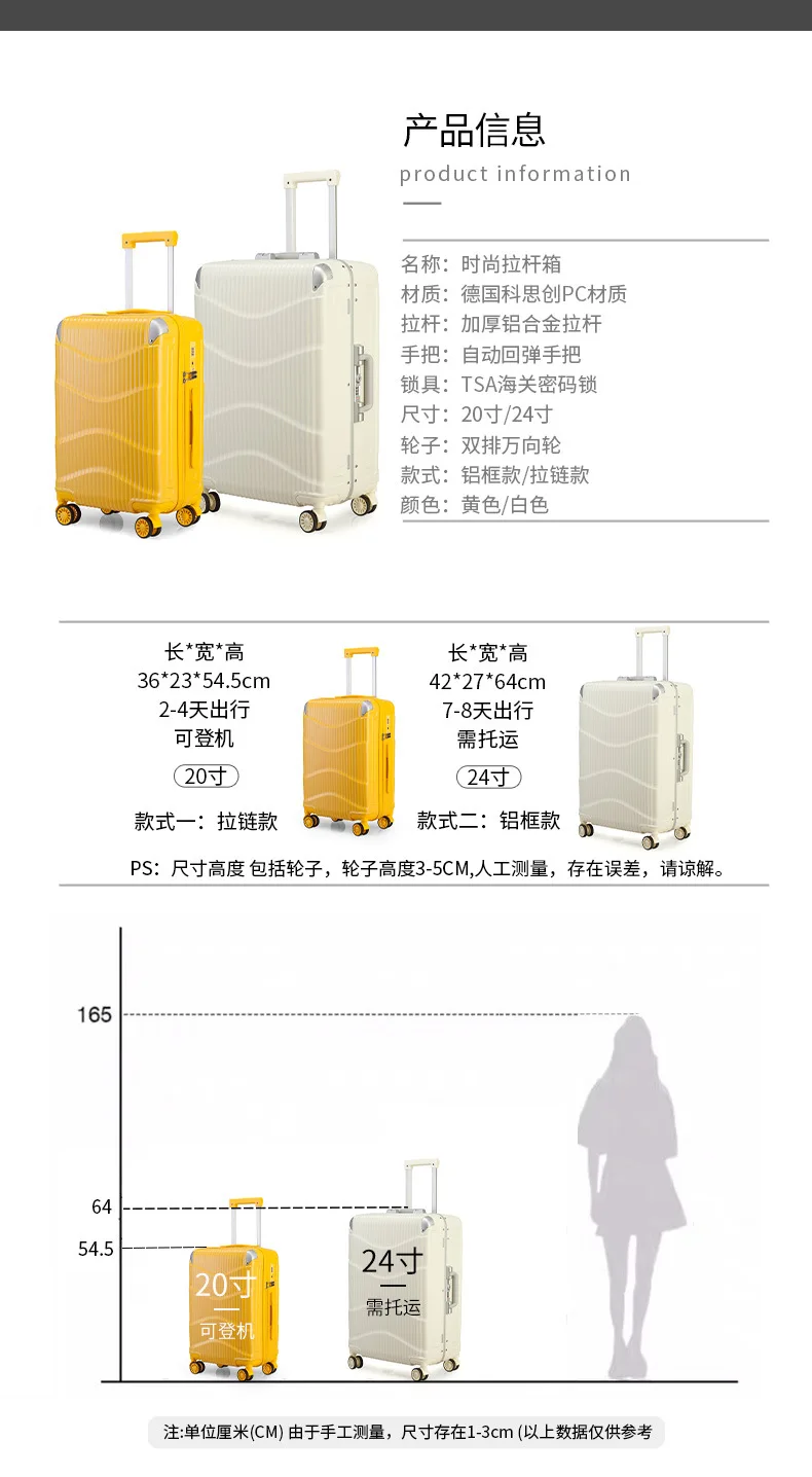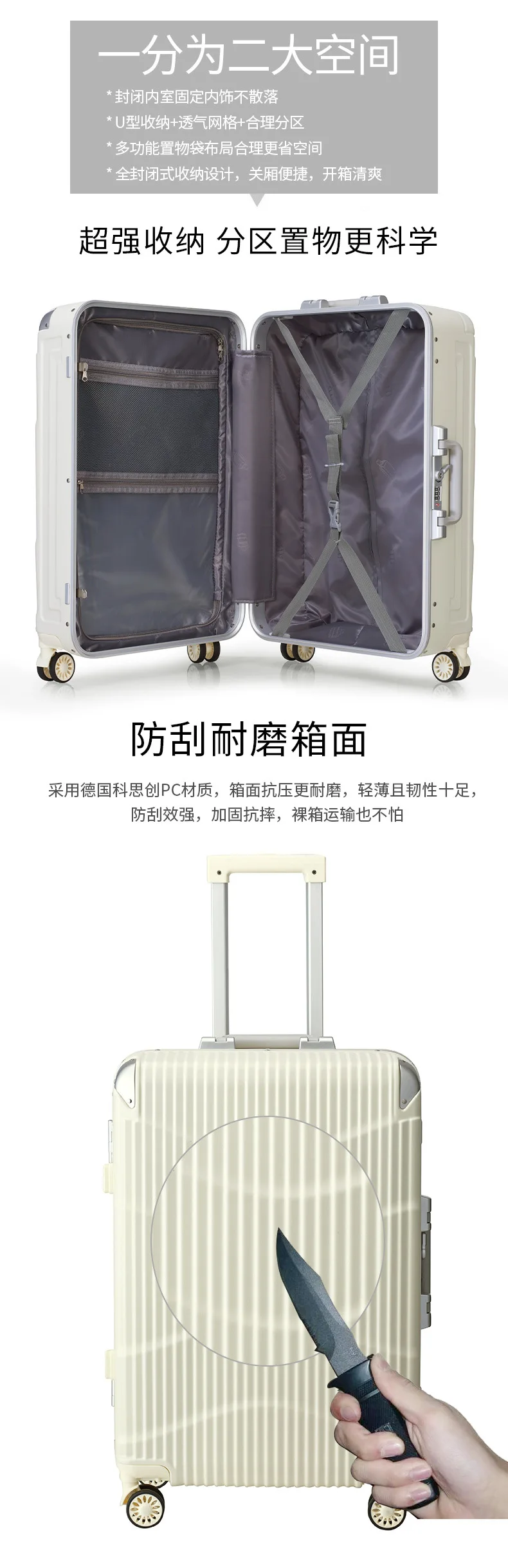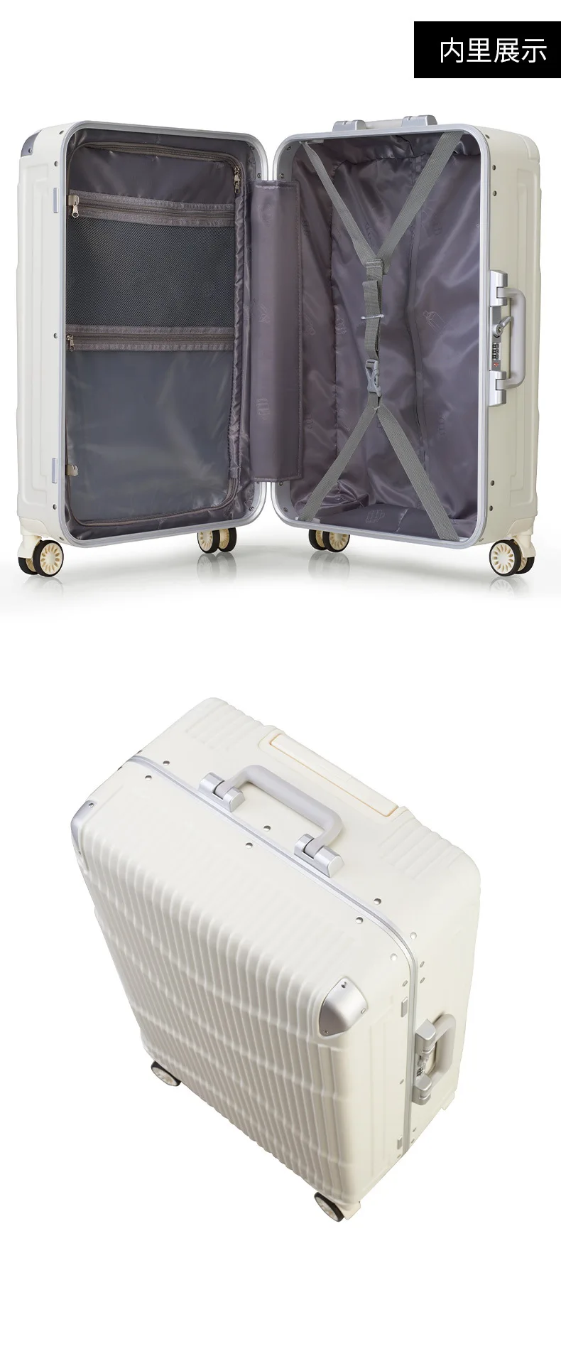 Designer Luggage Aluminum Frame Women Travel Suitcase PC Hard Shell Trolley Case Rolling Wheels TSA Lock