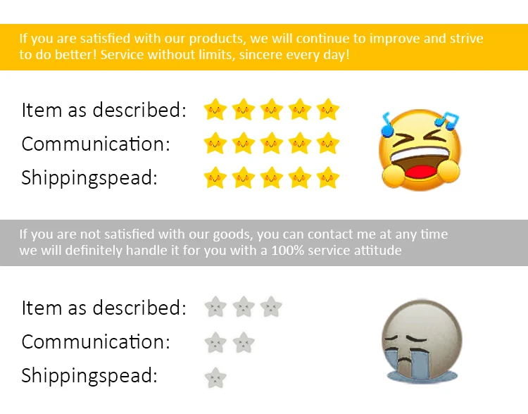 2. Если вы не удовлетворены нашей продукцией, пожалуйста, свяжитесь с нами, прежде чем оставлять негативные отзывы. Мы гарантируем, что приложим все усилия для решения проблемы. Спасибо.