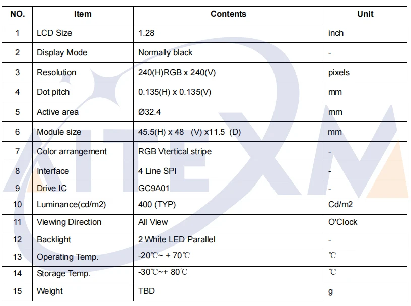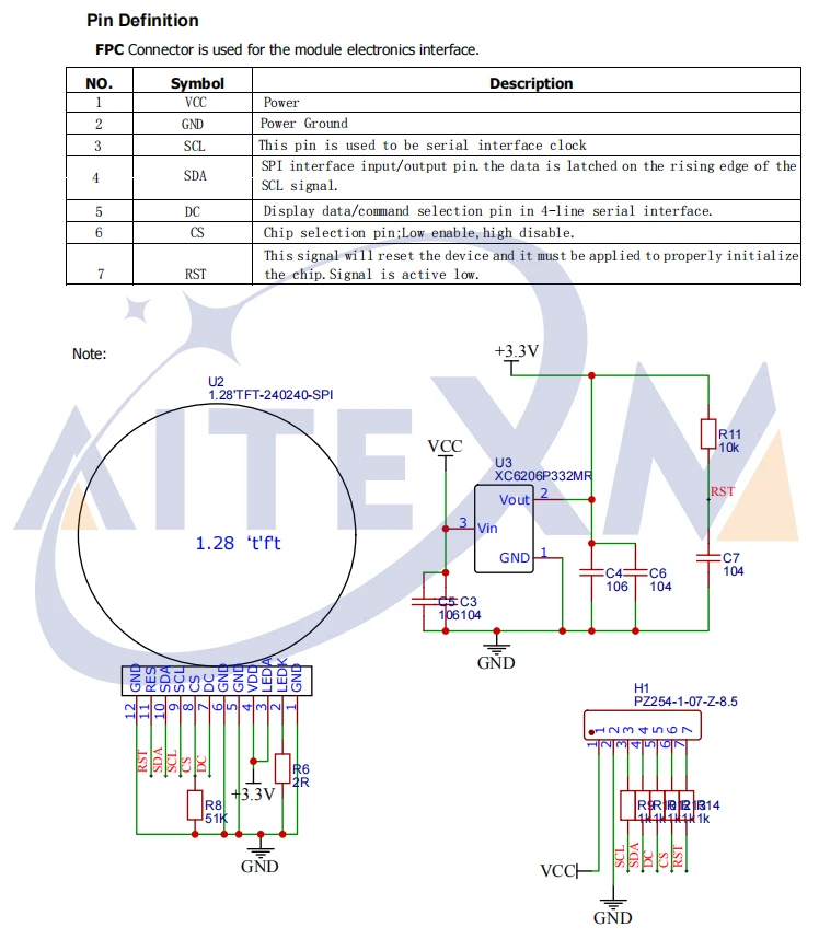 1,28 дюймовый TFT дисплей Moduleis a 240RGBX240 матричный TFT ЖК-модуль. Этот модуль состоит из TFT ЖК-панели, драйвера ICs, FPC и блока подсветки.