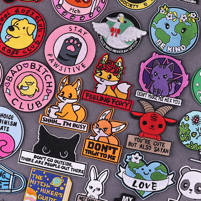 Нашивки с вышитыми рисунками животных, надписями, утюгом, нашивками для одежды, наклейками, нашивками для кошек, корги, одежда, Детская футболка с аппликацией