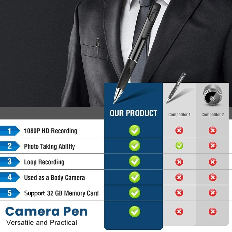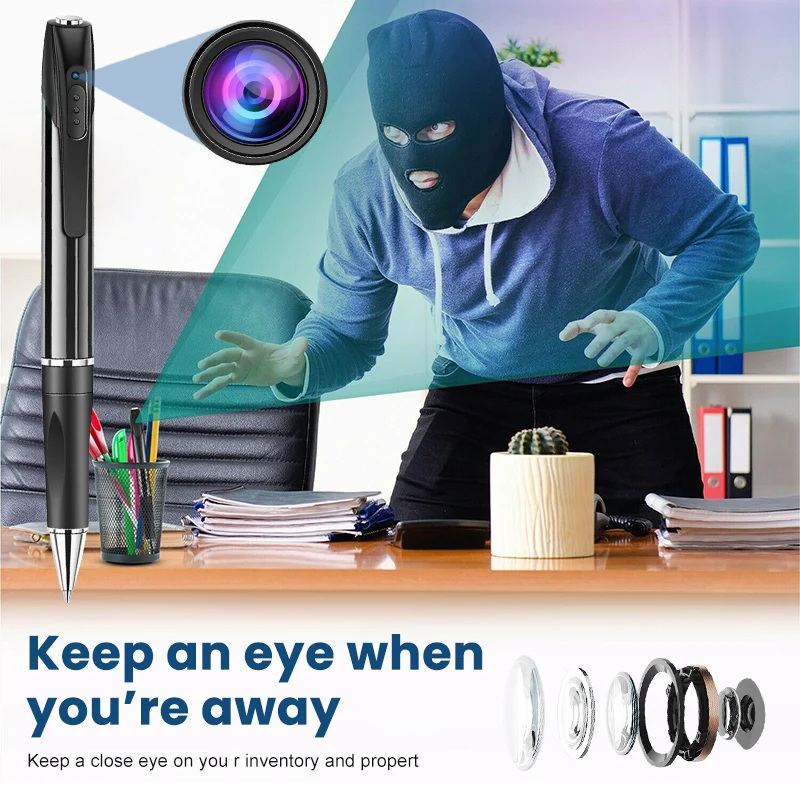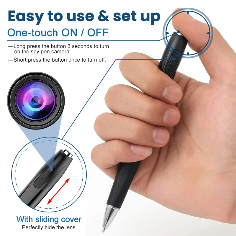 2. Универсальный и практичный: Наша шпионская камера не отличается от обычной ручки. Он имеет возможность прикрыть объектив, таким образом, почти невозможно заметить, что это камера. Вы можете быть помещены в любом месте и могут быть помещены с другими ручками и карандашами, и никто не заметит это.