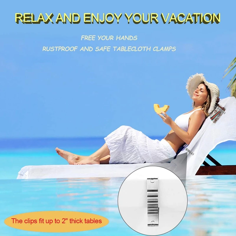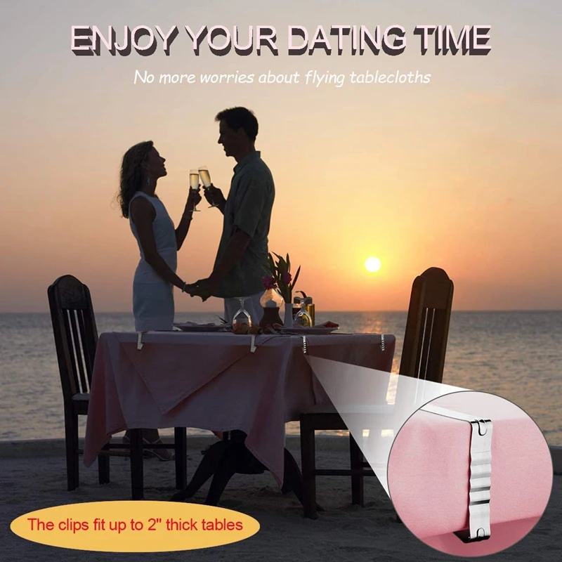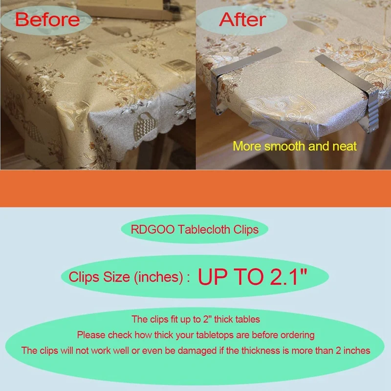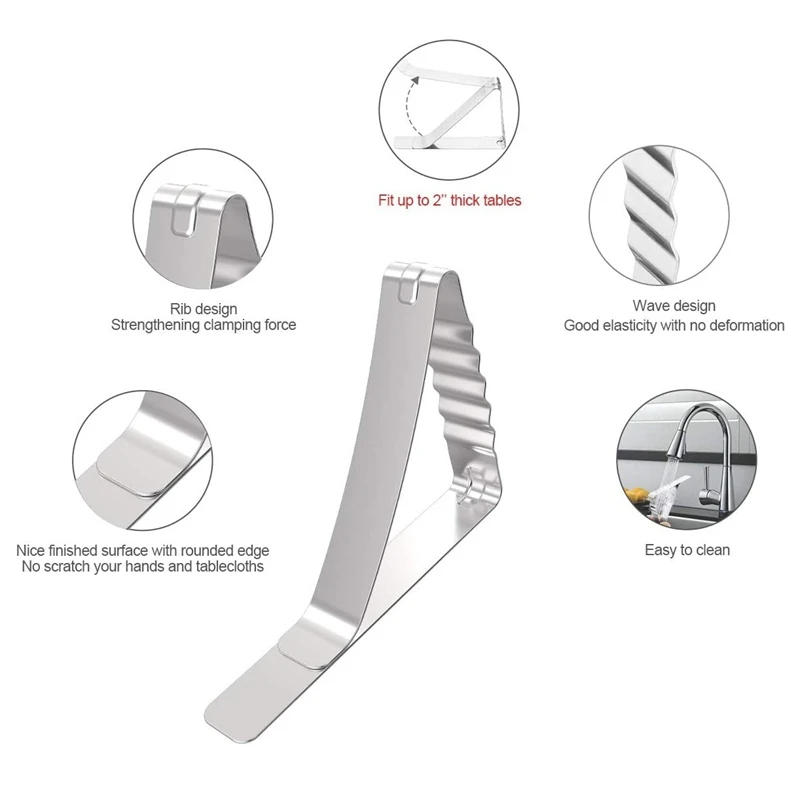 [Ржавчина и долговечность]-зажим для скатерти изготовлен из нержавеющей стали и имеет гладкую поверхность, которая не поцарапает скатерть. Его можно использовать повторно. Это лучшая скатерть, чем пластиковые клипсы.