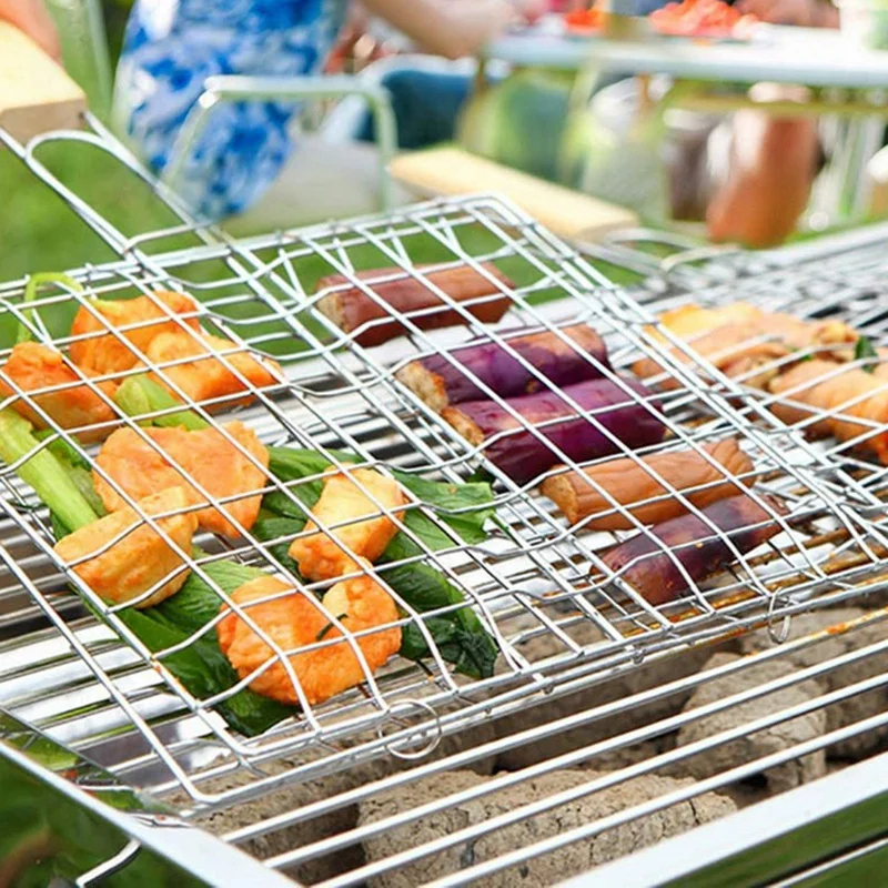 Складывается и легко чистится: складной дизайн отлично фиксирует еду, чтобы еда была более равномерной, более вкусной. Железный гриль можно легко чистить. Возьмите его в выходные и наслаждайтесь вкусными продуктами для барбекю (такими как рыба, овощи, баклажаны, креветки, стейки и т. д.) с друзьями и семьей.
