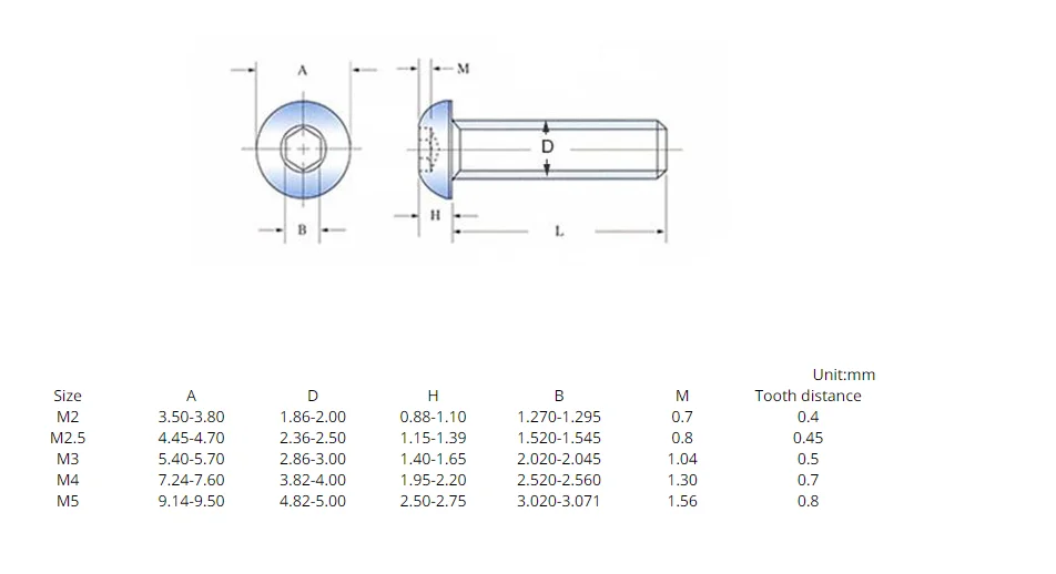 E. g: m2x6mmозначает диаметр = 2 мм, длина = 6 мм