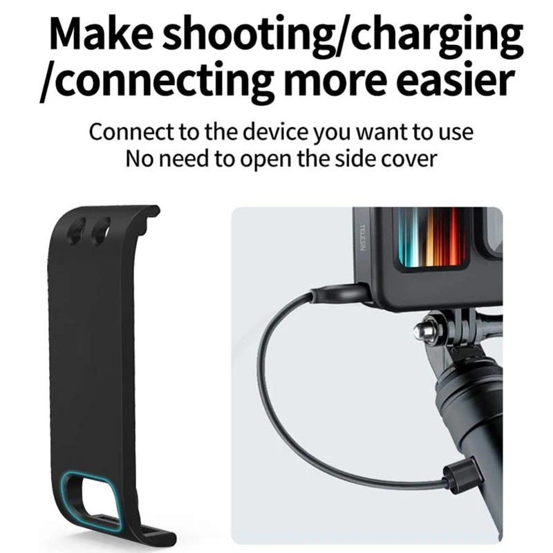 Боковая крышка аккумулятора для GoPro Hero 10 9, черная Съемная крышка для аккумулятора, зарядный чехол для Go Pro Hero9 GoPro9, аксессуары