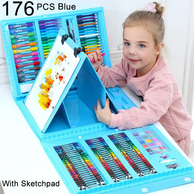 Легко носить с собой: Набор для рисования Из 208 предметов оснащен прочной ручкой, портативный и удобный в переноске. Позволяет вашему ребенку легко раскрашивать и создавать чехол в любом месте! Отлично подходит для использования на открытом воздухе, путешествий, кемпинга, путешествий