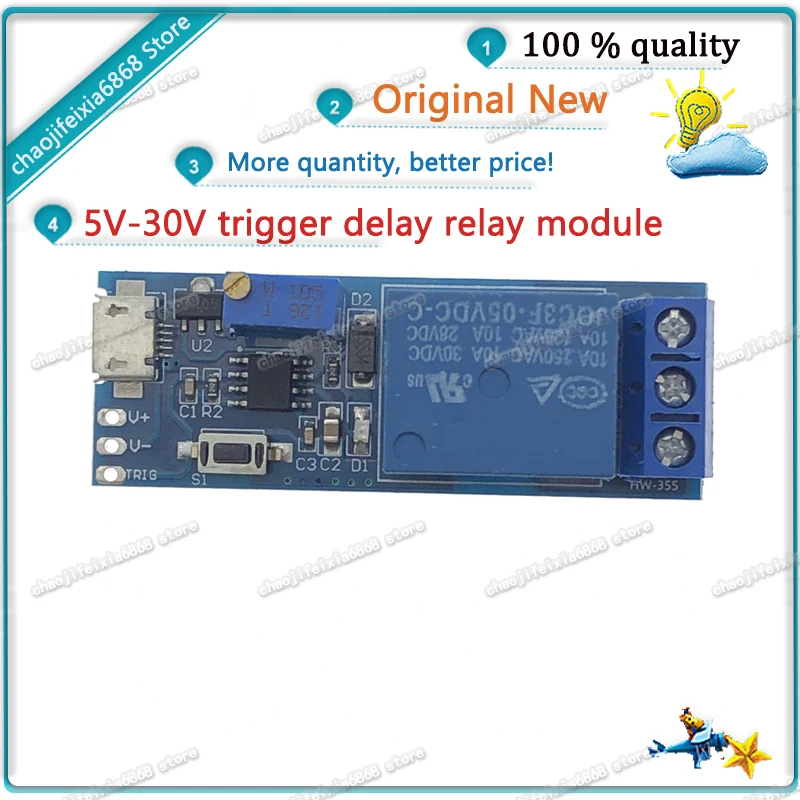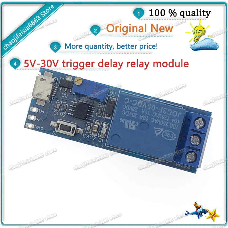 Wide voltage 5V-30V trigger delay relay module timer module delay conduction delay switch button