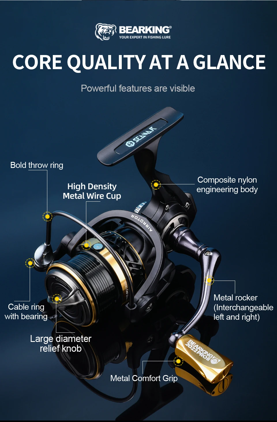 BG1000 | Передаточное отношение: 6,2: 1 | Вес: 237 г | Подшипники: 9BB | Максимальное сопротивление: 6 кг | Мощность линии: 3 фунта. (0,165 мм)-130 м (140 ярдов.)4 фунта. (0,205 мм)-100 м (110YD5)
