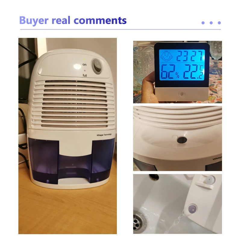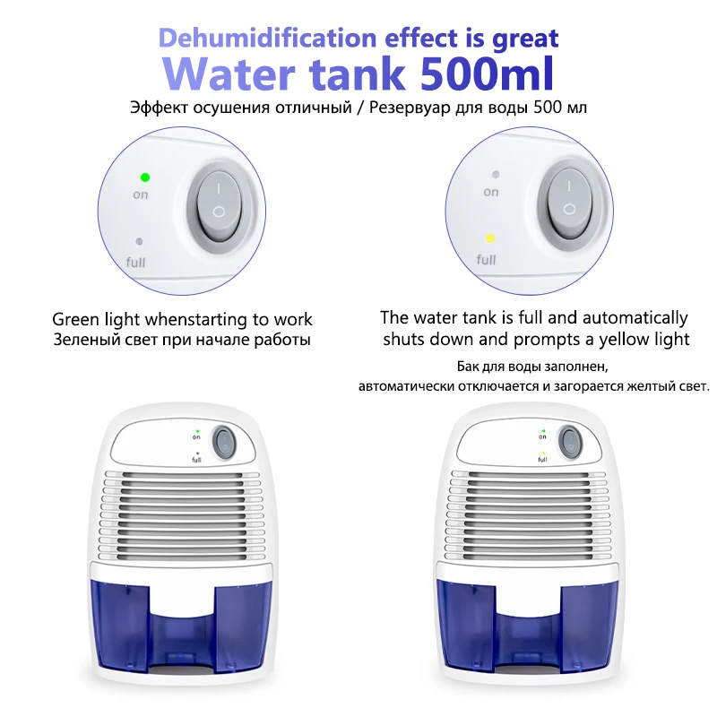 Примечание: суточное количество осушения составляет 250 мл, что является результатом тестирования в среде 30 °C (86 °F) RH80 %. Кроме того, количество осушения зависит от температуры и влажности рабочей среды. Когда влажность в вашей комнате очень низкая, машина больше не будет собираться, пожалуйста, имейте в виду.