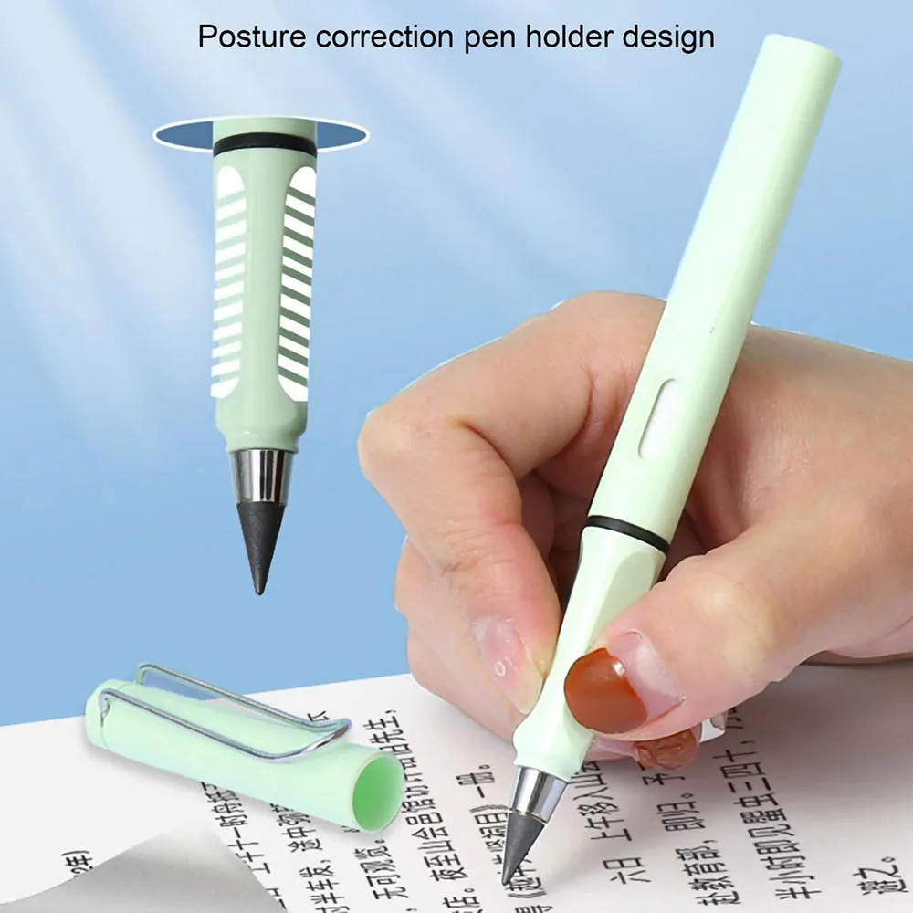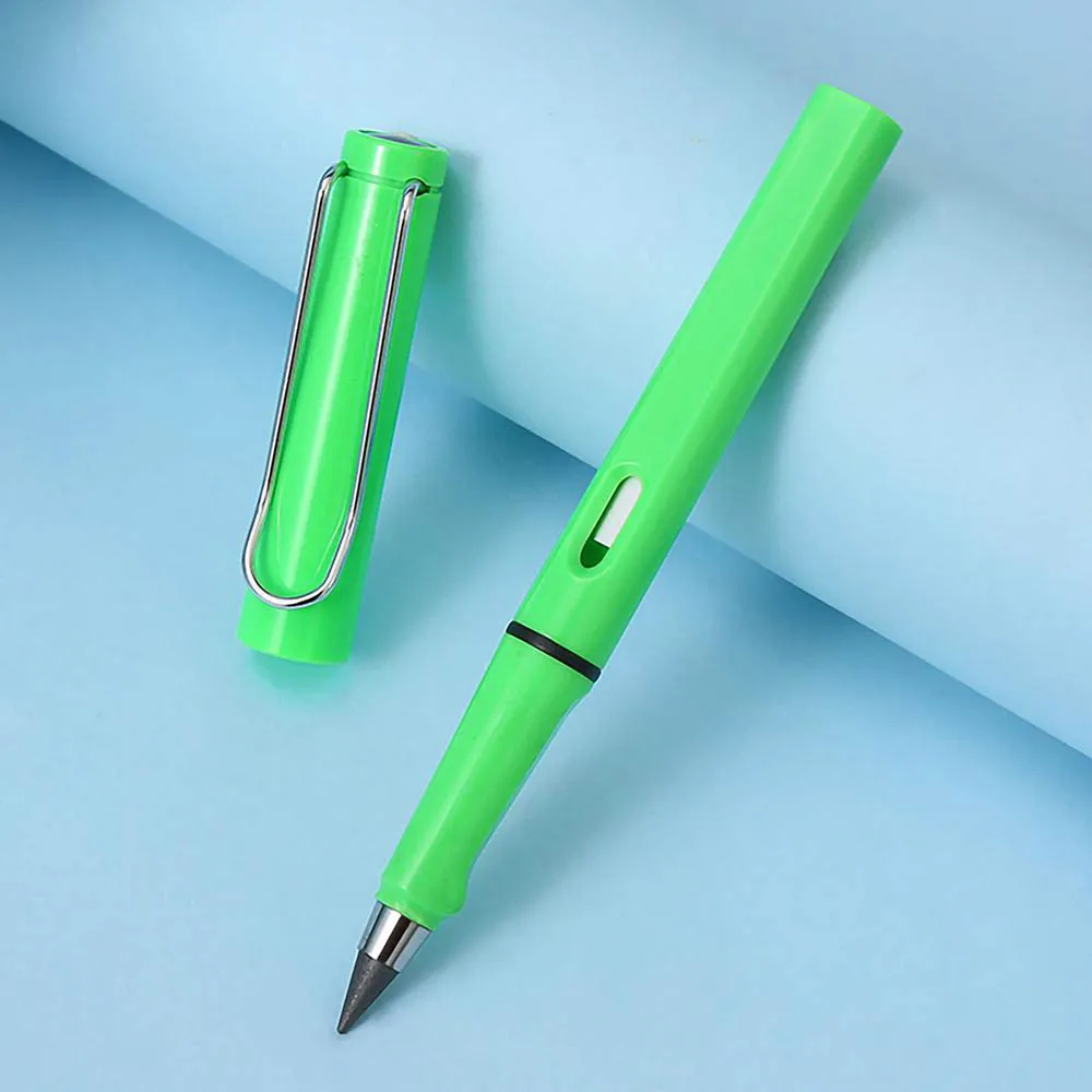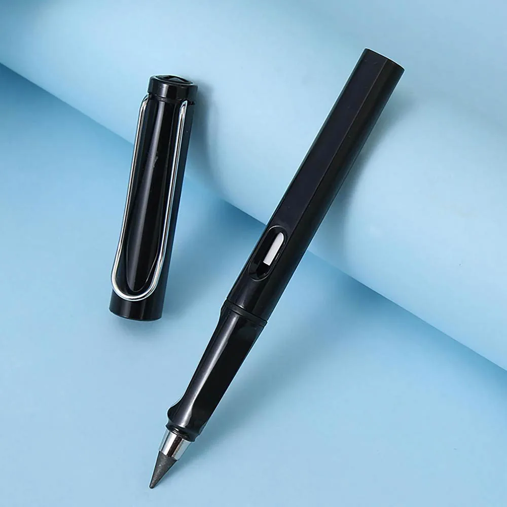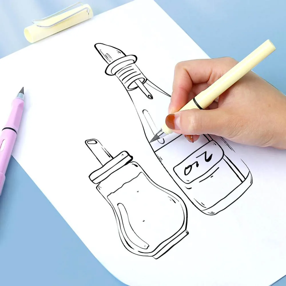 Эта ручка не требует заточки, чернил и может долго писать, не пачкаясь руками.