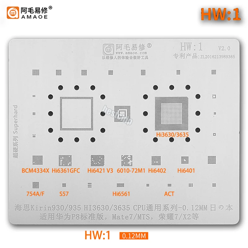 Amaoe HW1 BGA трафарет олово для Huawei P8/Mate7/S/Horon 7/X2 Kirin930/935 Hi3630/Hi3635 CPU RAM BCM4334X Hi6361GFC Hi6421 Hi6402 Hi6401 7401 72571 hi6571 hi6571