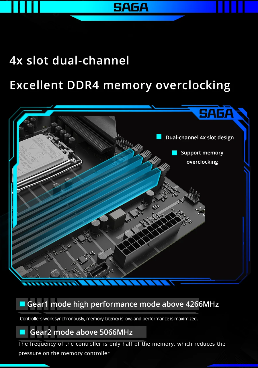 Характеристики памяти: 4 двухканальных слота памяти DDR4 DIMM, поддержка разгона