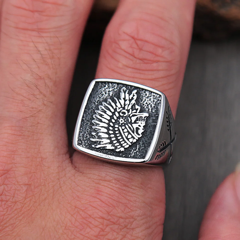 Название: Винтажный Индийский главный череп, кольцо для панков рок стрела из нержавеющей стали кольцо для мужчин тяжелый металл Байкер ювелирные изделия подарок Прямая поставка