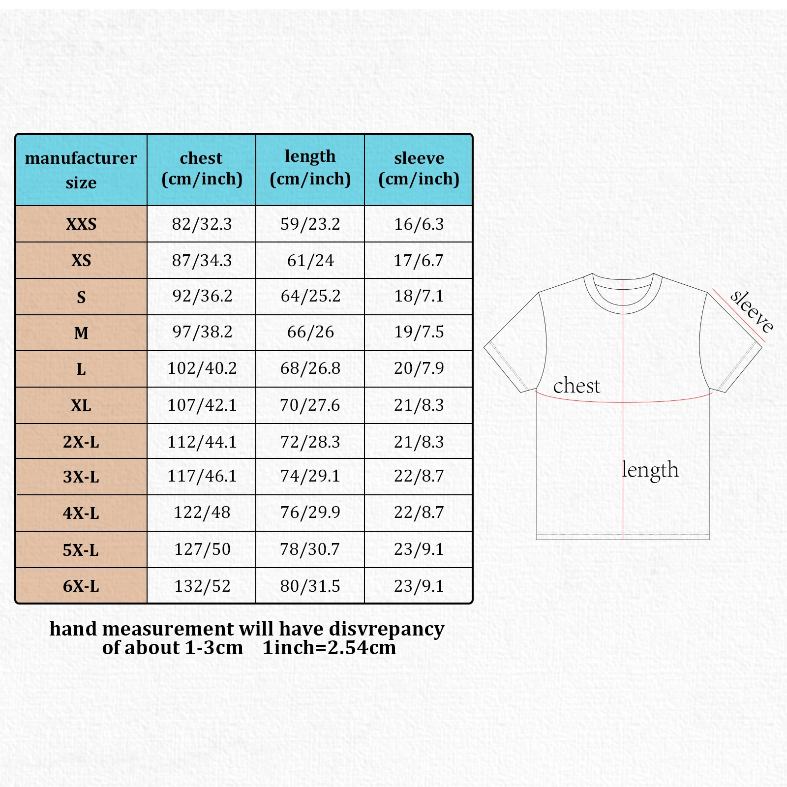2. Эта Таблица размеров предназначена только для справки. Допускается погрешность в 1-3 см для измерения вручную.
