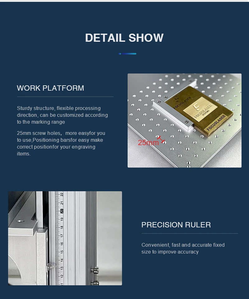 Прочная структура, гибкое направление обработки, может быть настроена в соответствии с маркировочным дальномером. 25 мм Винтовые отверстия, более легко для вас использовать, позиционирование барспс легко сделать правильное позиционирование для ваших гравировальных изделий.