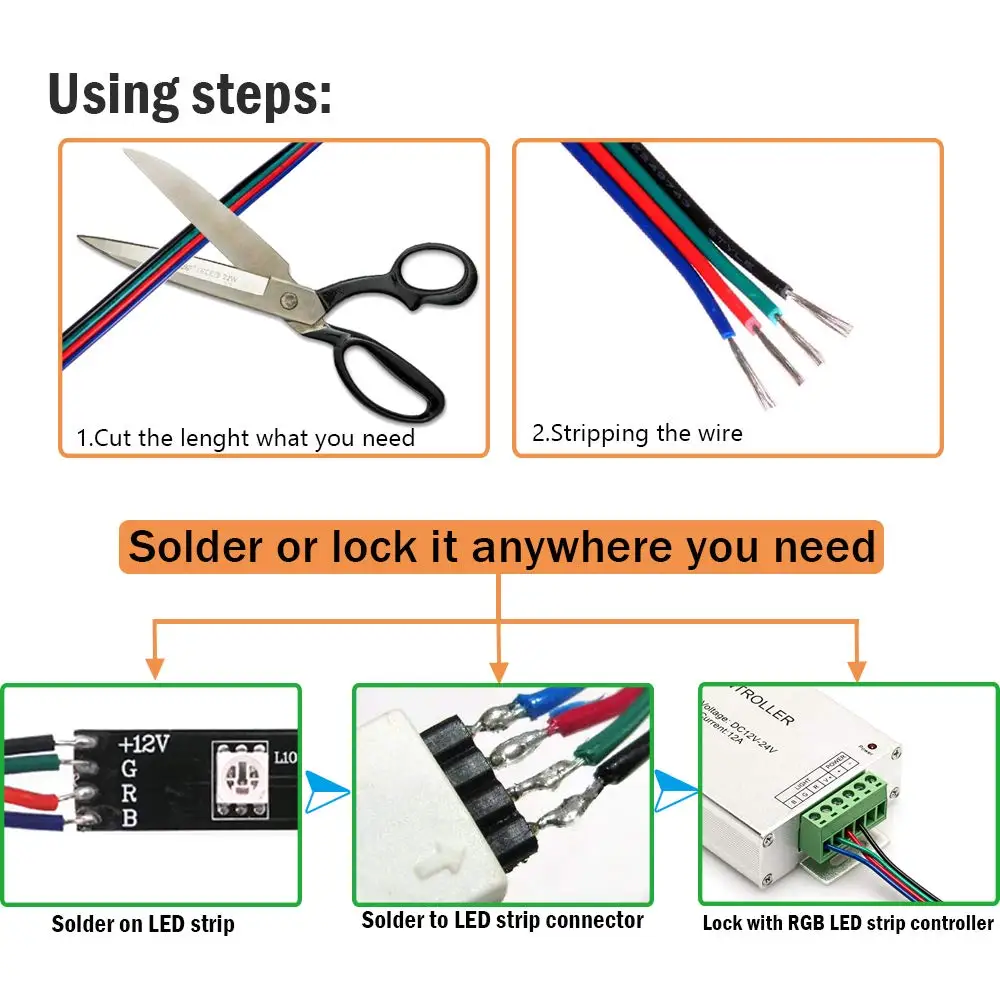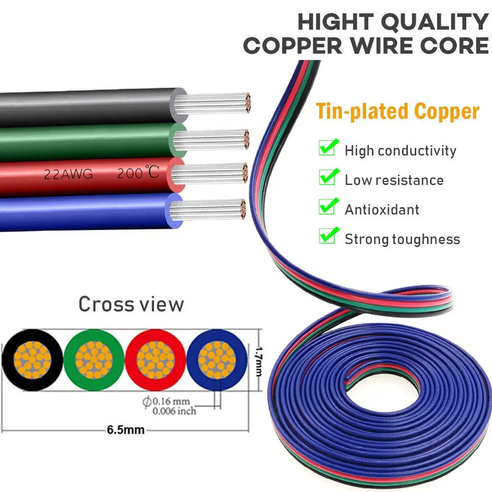 1 м, 2 м, 3 м, 5 м, 10 м, 20 м, 50 м, 100 м, 4-контактный Удлинительный кабель 22AWG, Светодиодная лента, соединительный провод с иглами 2835 5050, RGB светильник, Удлинительный шнур