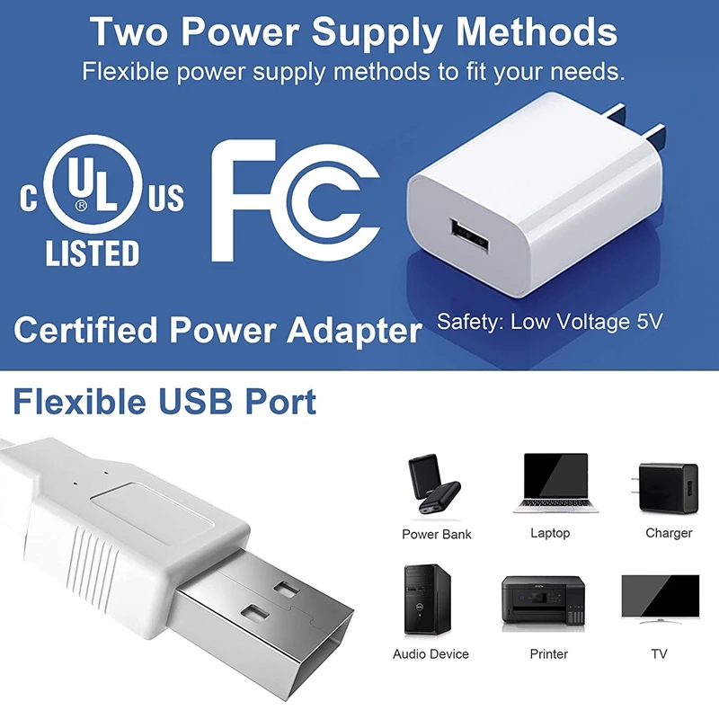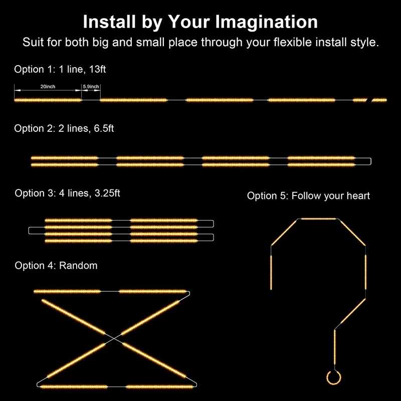 Гибкая конструкция: usb-портом совместимым, вы можете использовать адаптер питания или usb-интерфейс для источника питания, 8 светильник полоски (20 inch/pc) с соединительных проводов (5,9 inch/pc) предназначены для того, чтобы сгибать и сворачивать вокруг углов. И вы можете свободно настроить длину и разрезать на конце полосы-светильник.