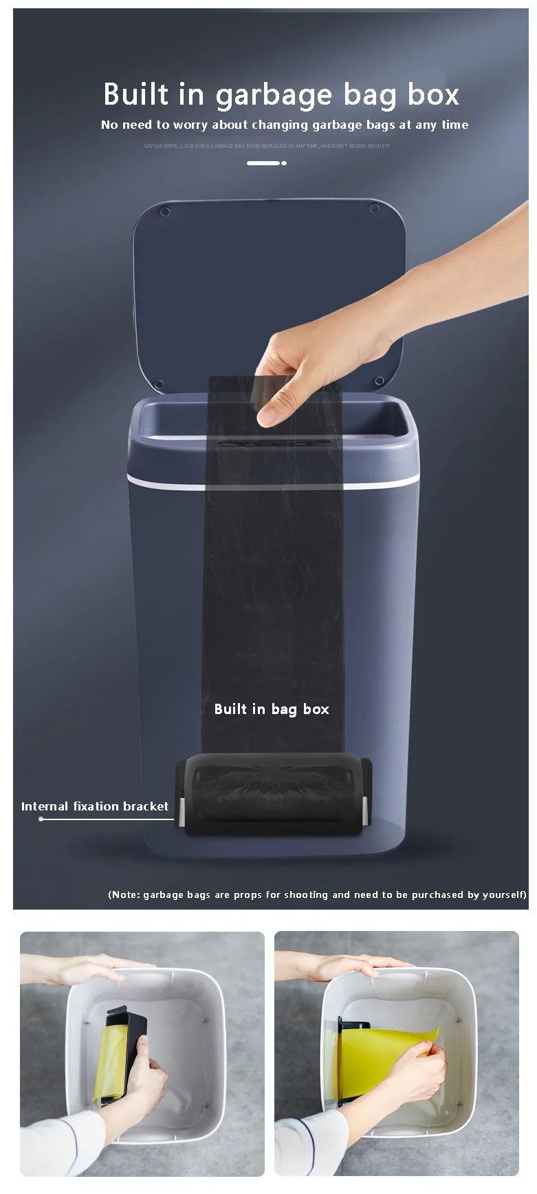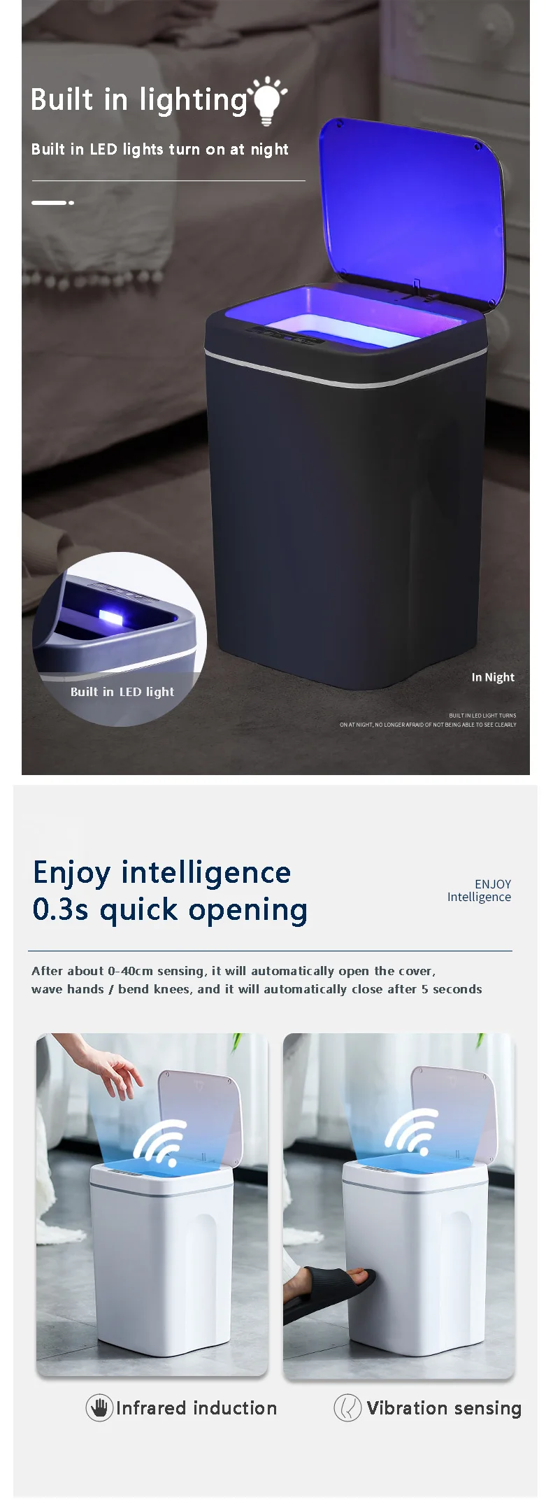 Упаковочный лист: 1 * умный мусорный бак (без батареи)