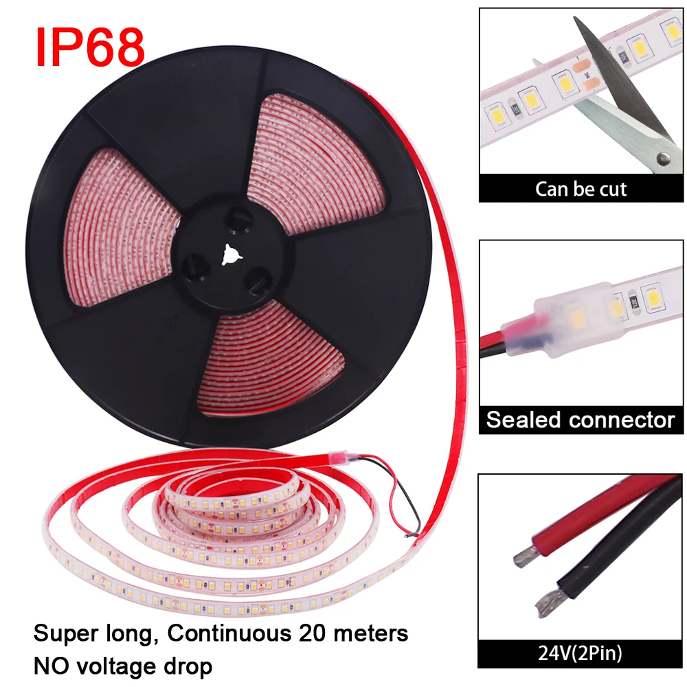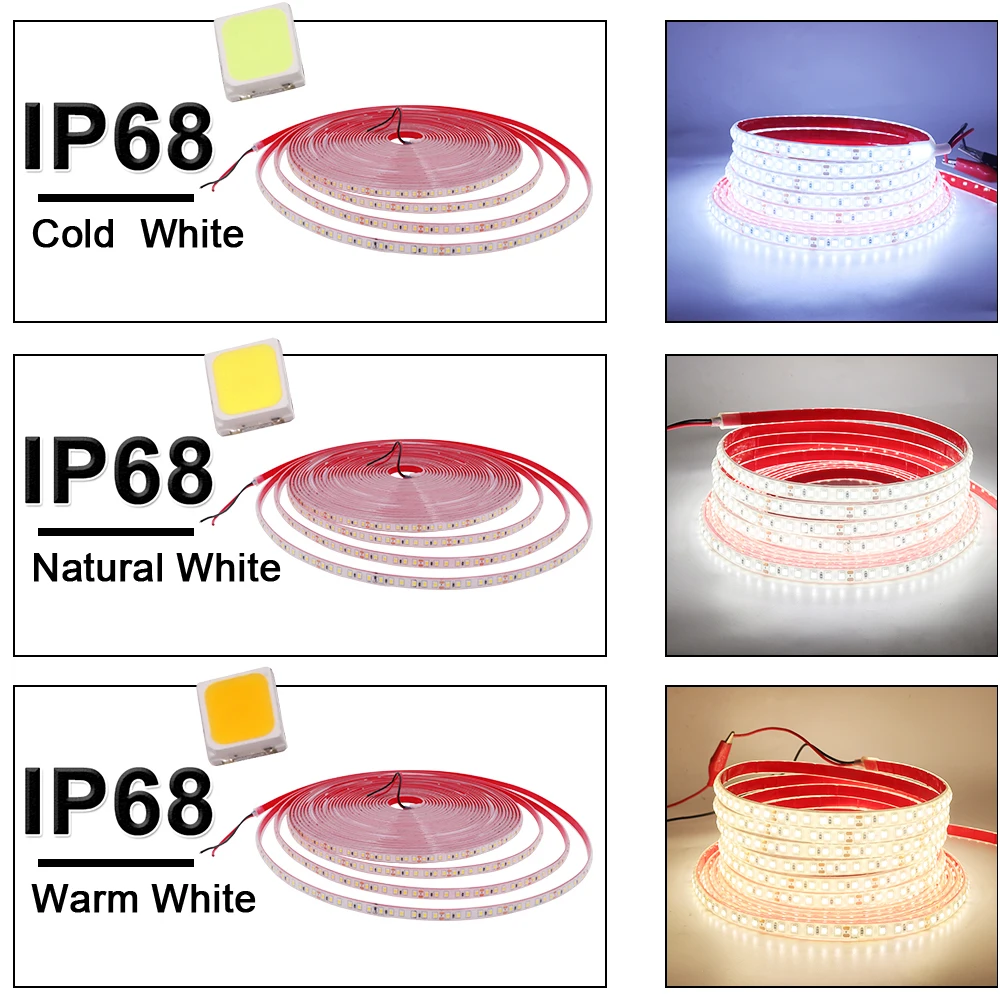 12 В 24 2835 Светодиодная лента 5 м 10 15 20 120 светодиодов/м Водонепроницаемая IP68