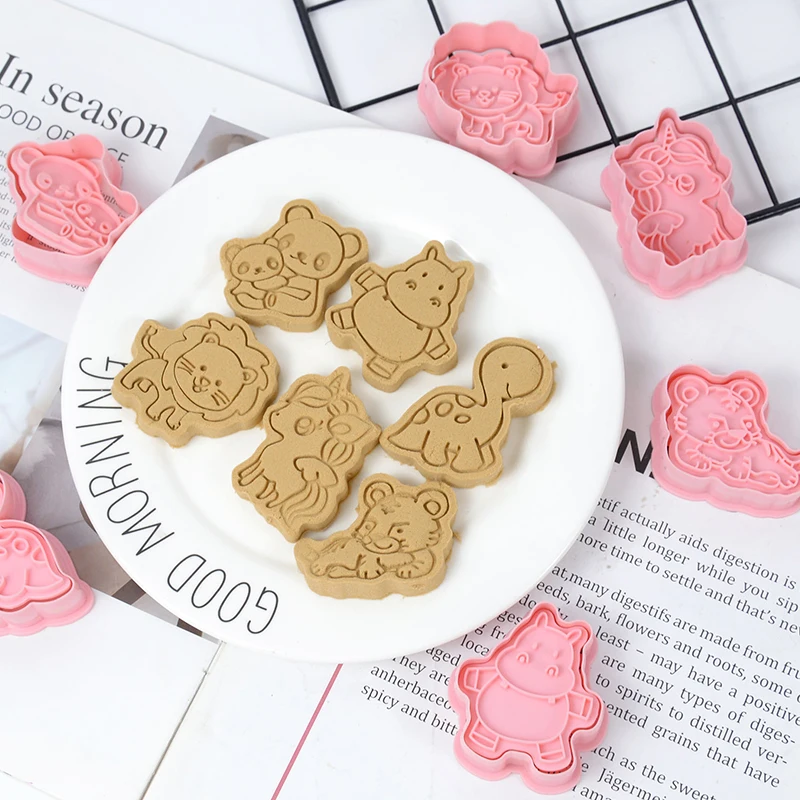 8, 6 штук в партии, животные формы для печенья фрезы Милая собачка кошка Fondant (сахарная) печенья прессформы для Единорог динозавров для детской вечеринки в честь Дня Рождения, декор для детского дня рождения