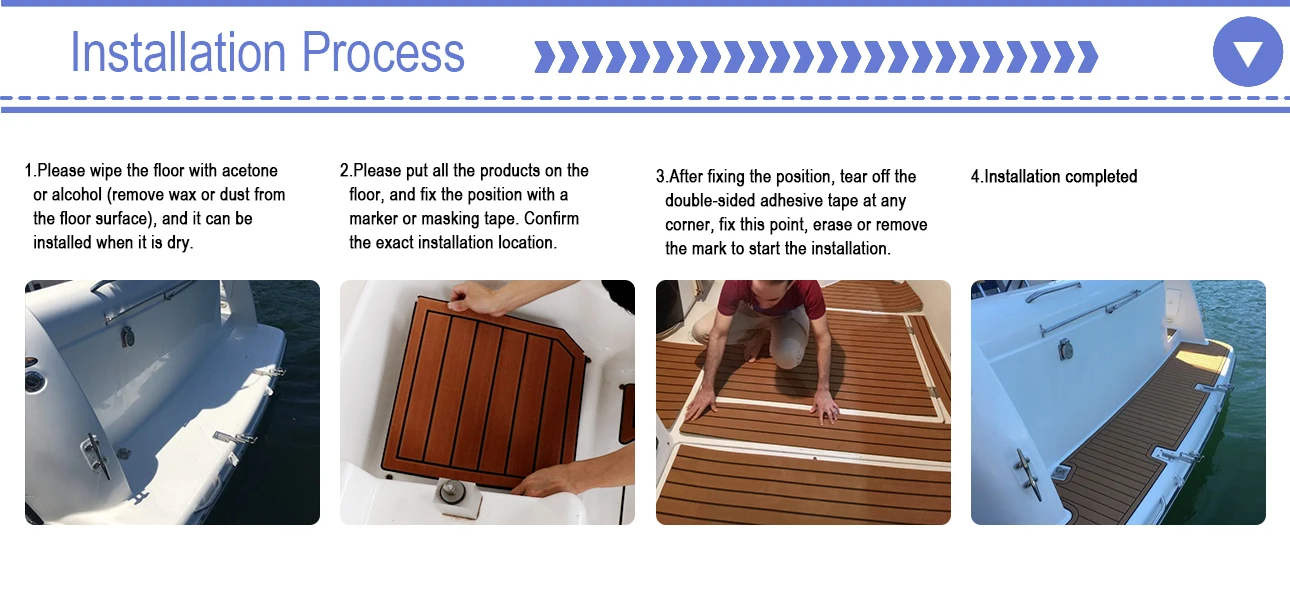 Широко используется--- Пол корабля палубы океана очень подходит для пола корабля, пола RV, Каяка, яхты, вертикального пола, тележки для гольфа, бассейна, лодочного прицепа, коврика для серфинга, коврика для серфинга, мотоцикла, коврик для палубы корабля, автомобиль или другие места.