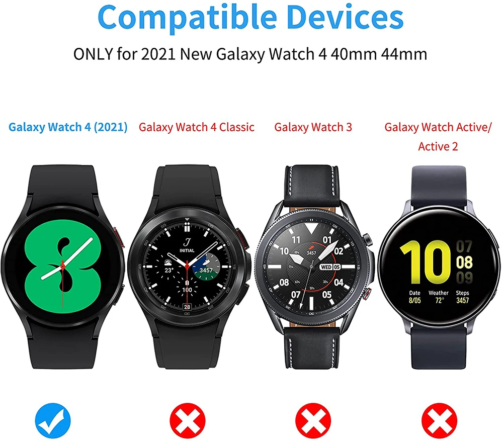 Примечание: чехол подходит только для Galaxy Watch 4, пожалуйста, выберите правильную модель часов и размер для себя.