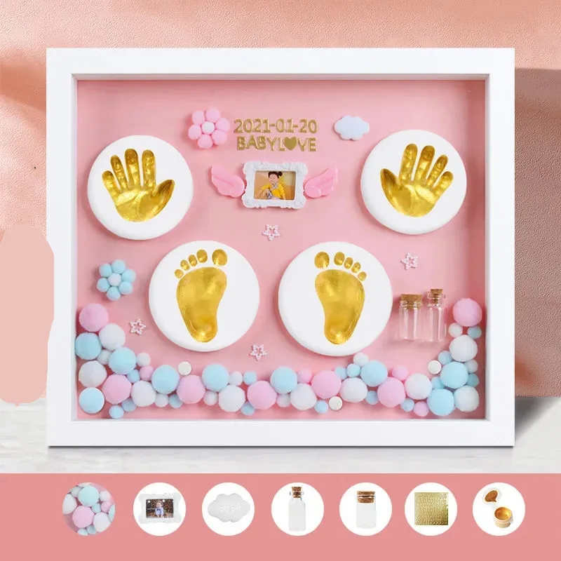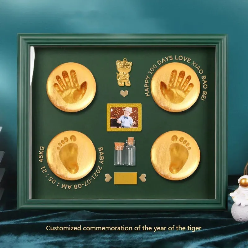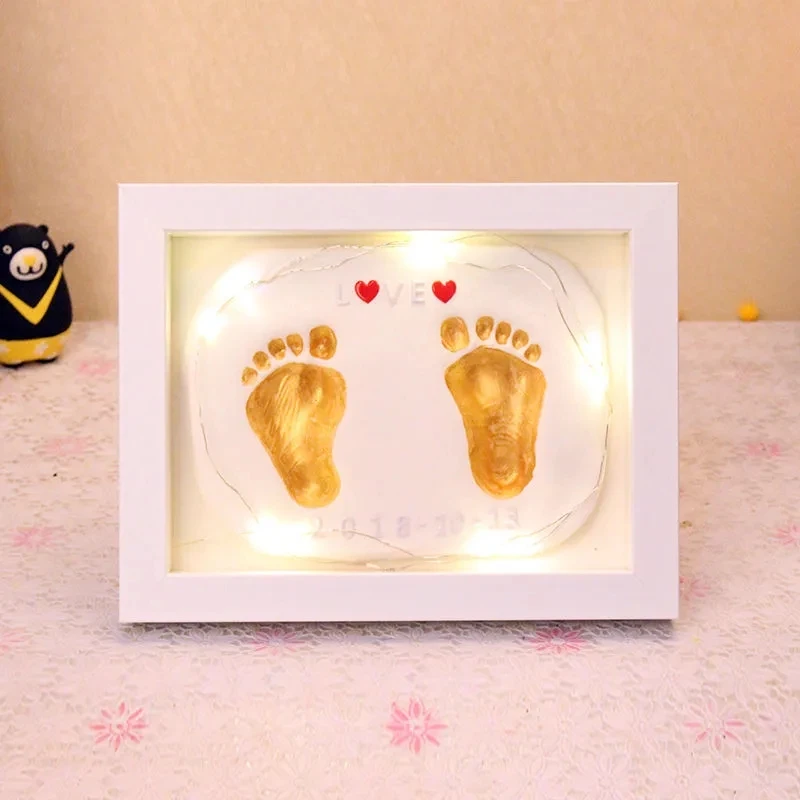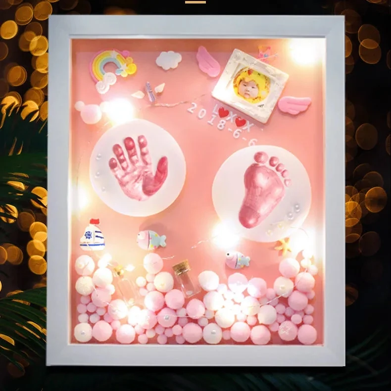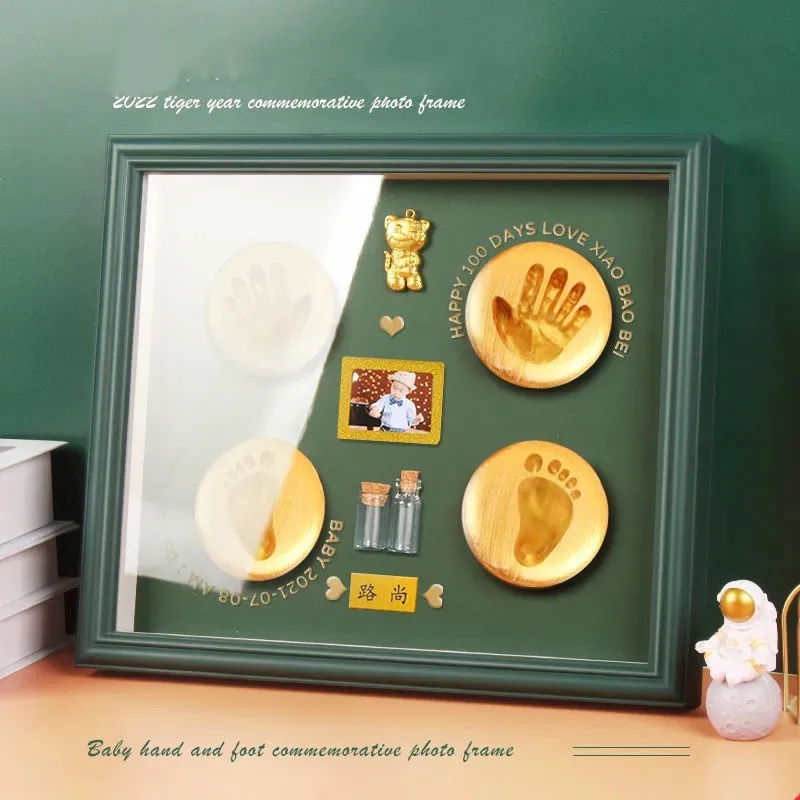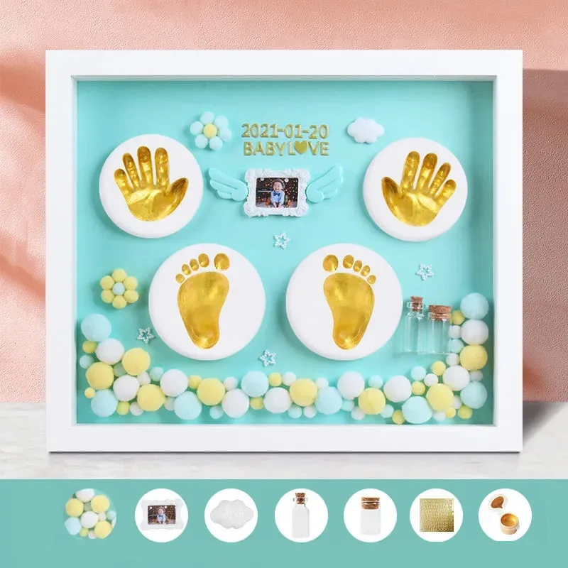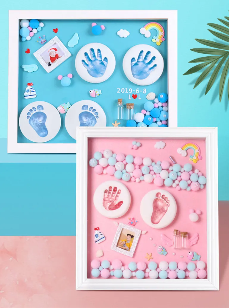 5. Remember to wait until the hand and footprint mud is completely dry before placing it in the photo frame.
