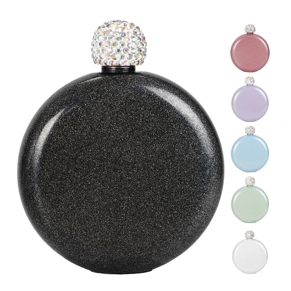 140ml Stainless Steel Hip Flask Round Portable Leak-proof Faux Crystal Lid Alcohol Flask Women's Wine Bottle Wine Exquisite Accessories