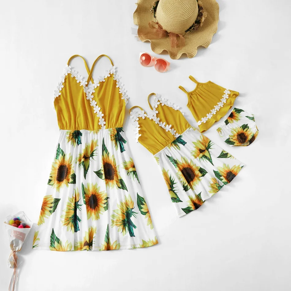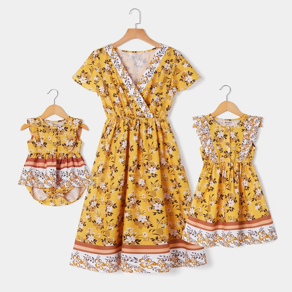 Летнее платье для мамы и дочки пляжная одежда с v-образным вырезом и принтом уличный купальник