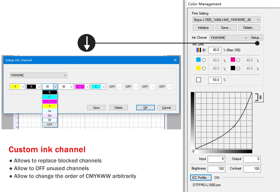 Предыдущая Настройка канала белых чернил необходимо удалить и создать новую настройку канала белых чернил для ET8550/8500 после установки