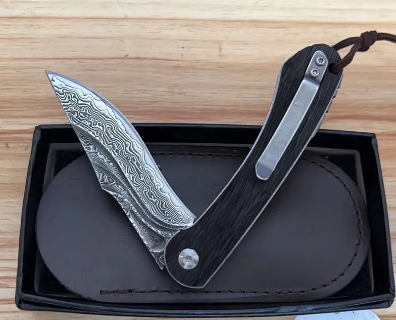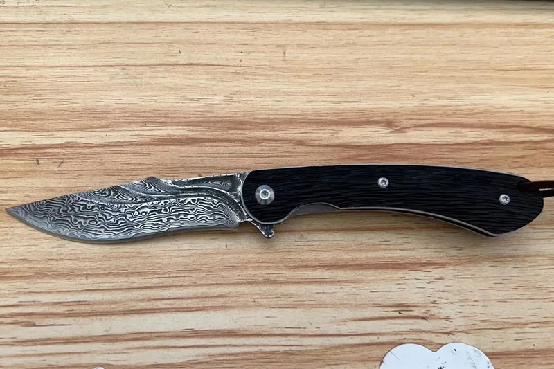 Общая длина: 19,0 см/7,48"Лезвие Длина: 8,5 см/3,35"Ручка Длина: 10,5 см/4,13"Материал лезвия: Настоящий VG10 ДамаскВес ножа: ~ 89 гТвердость: 59-61HRCМатериал ручки: Эбеновое деревоСистема: шариковый подшипник flipperЗажим для ножа: стальной зажимВинт: все винты 420 твердость из нержавеющей стали HRC45, Полная обработка ЧПУКачество: верхСмотрите так же другие товары: