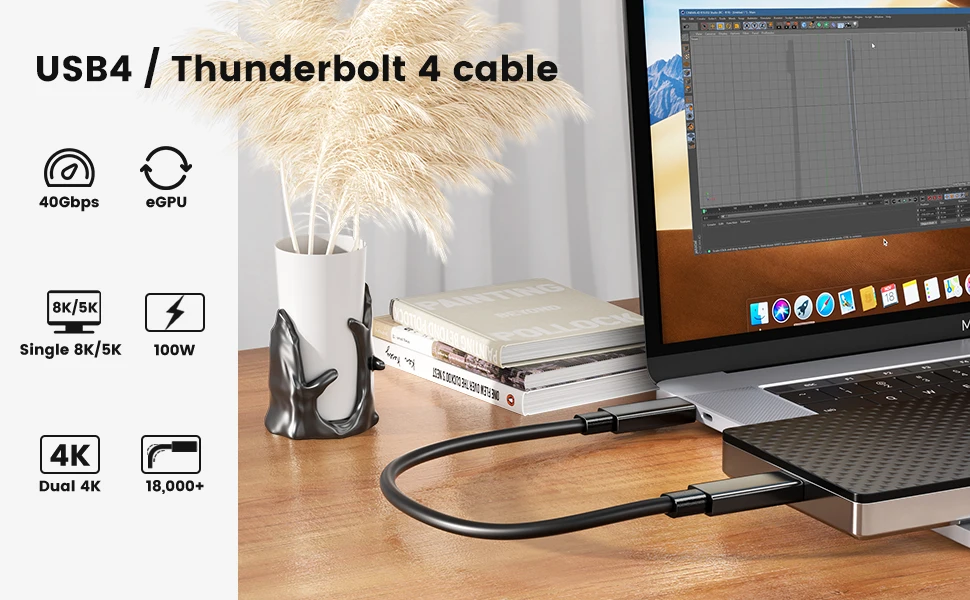 【Backward Compatibility USB4 Thunderbolt 4 Cable】This cable features USB4 thunderbolt 4 standard and is backward compatible with thunderbolt 3, USB4, USB-C 3.2, 3.1, and 2.0.