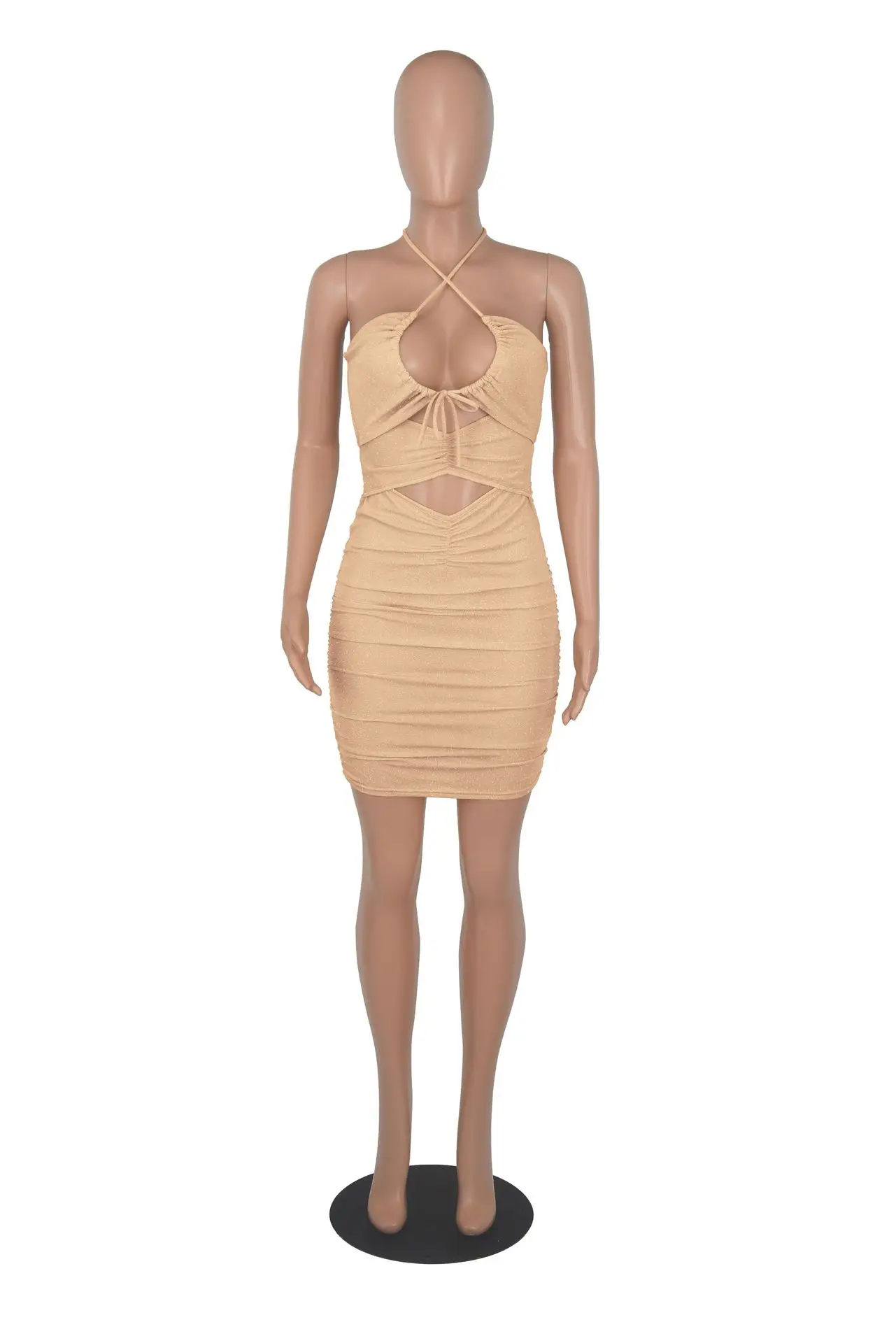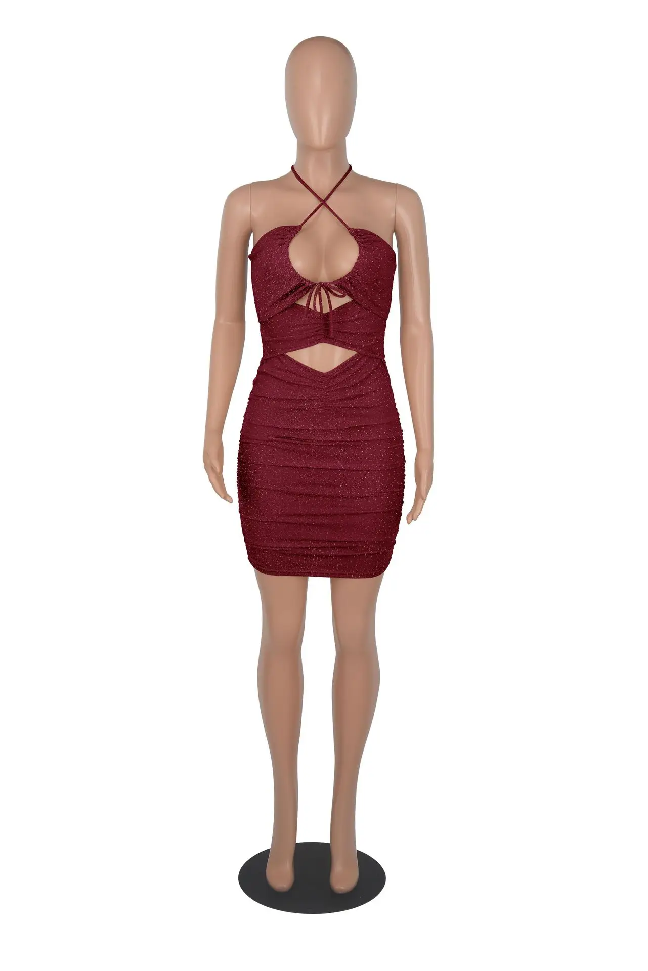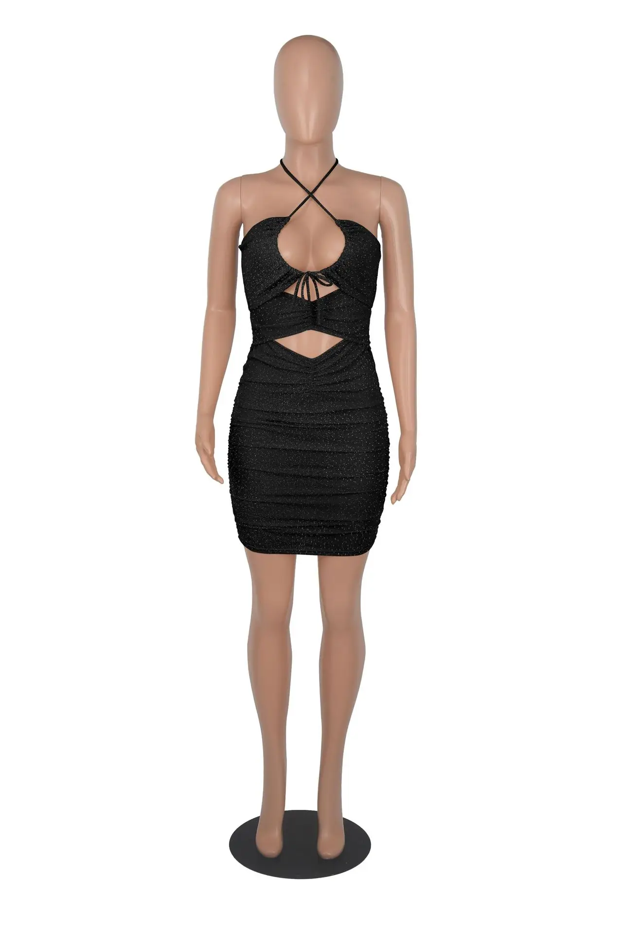 Женское платье 2019 элегантное с рюшами кружевное без рукавов длиной до середины