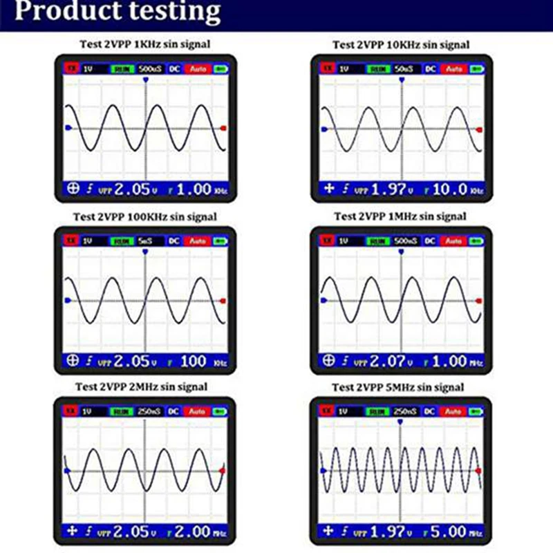 Технология сжатия памяти, экран обновления формы волны не мерцает. Технология отображения после свечения. 2,4 дюймовый цветной экран. 5 МГц аналоговая полоса пропускания @ 20 мс/с частота дискретизации. Быстрое хранение сигналов.