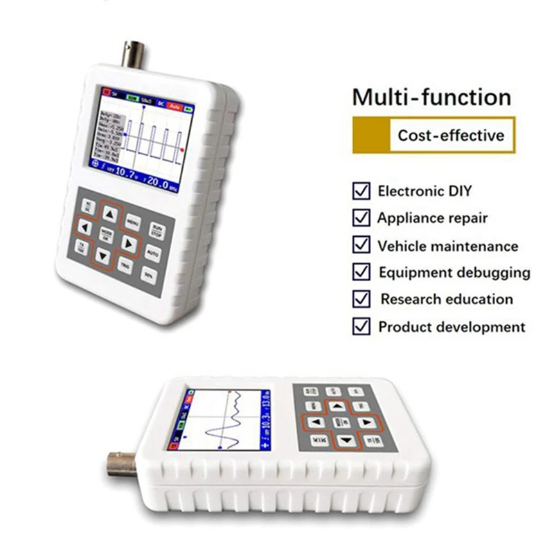 Оснащен высокой эффективностью одной кнопкой авто, измеренная форма сигнала может отображаться без сложной регулировки. Дисплей в Высокое разрешение ЖК-дисплей экран оснащен 2,4 дюймов 320*240 разрешение. Чрезвычайно удобная и быстрая функция хранения сигналов, встроенная память объемом 16 Мб, Максимальная память 500 изображений формы волны.