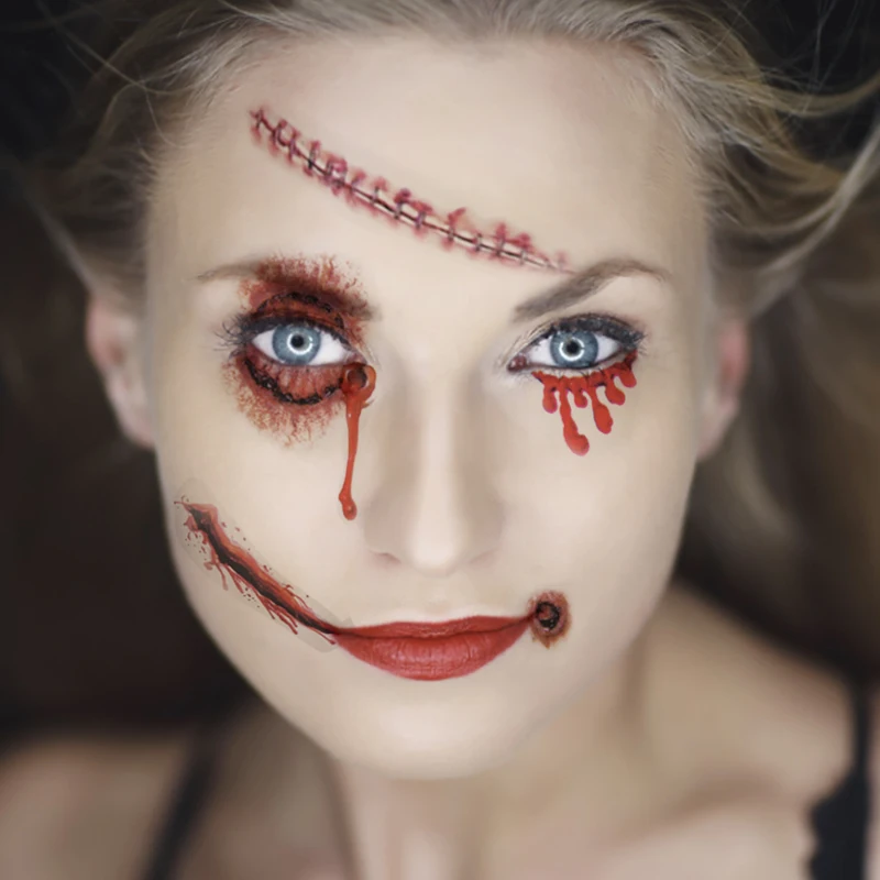 6 шт., наклейка на Хэллоуин с кровавой раной, прошитая Татуировка шрамы, удобная водостойкая Временная тату-наклейка, декор для вечевечерние НКИ на Хэллоуин
