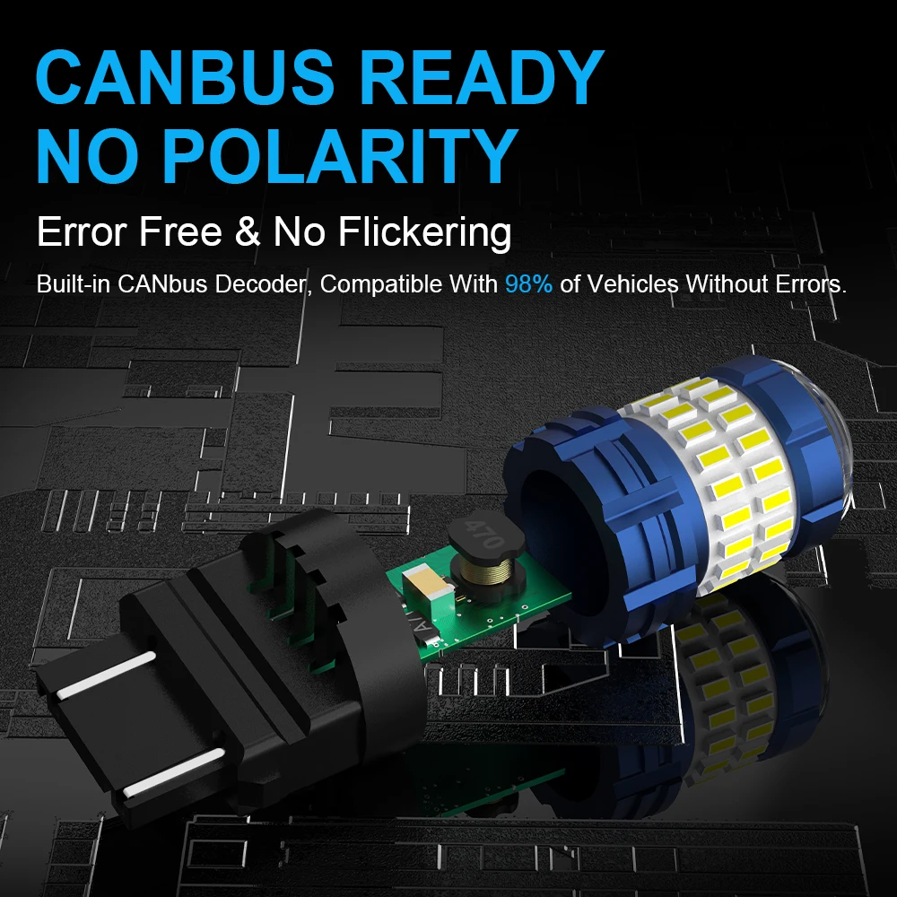 Эта лампа не имеет Ошибок Canbus для 97% + транспортных систем, но некоторым европейским и американским транспортным средствам может потребоваться резистор нагрузки (декодер)