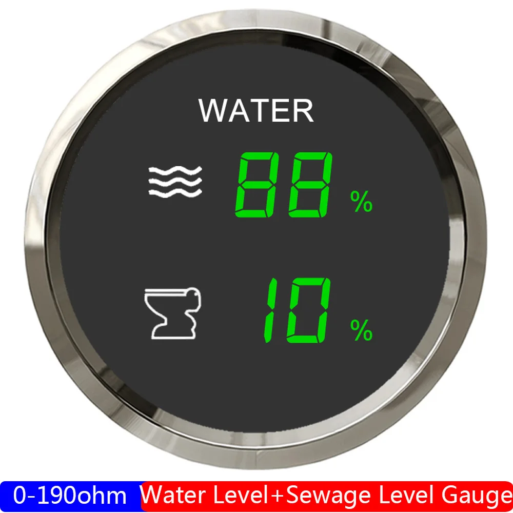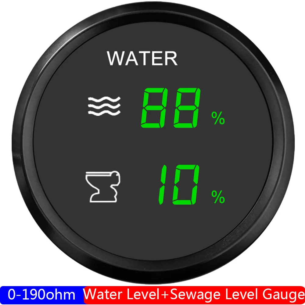 Fuel Gauge, Water Level, HTG Sewage Level: %