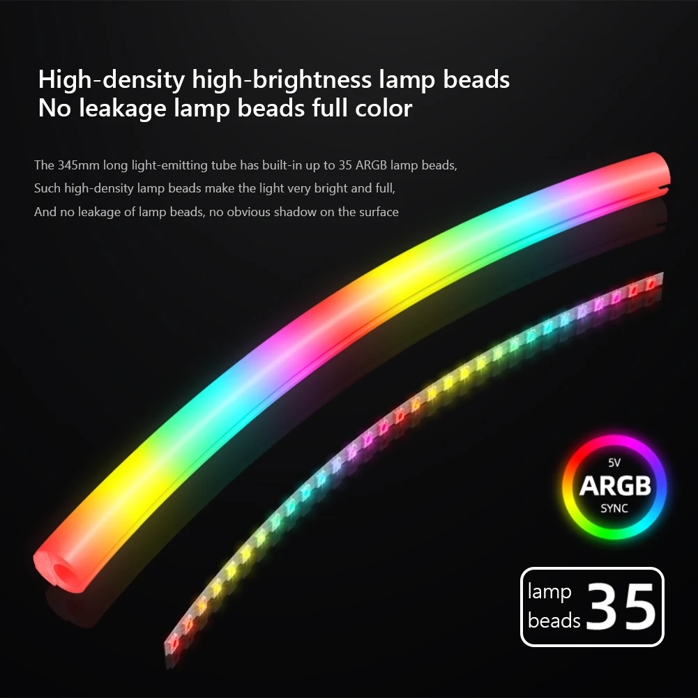 2. Лампы высокой плотности высокой яркости:345 мм Длинный светильник-излучающая трубка имеет до 35 шт. ARGB Ламповые бусины встроенный. Такие лампы высокой плотности делают светильник очень ярким и полным, без утечки ламповых бусин и без заметных теней на поверхности.