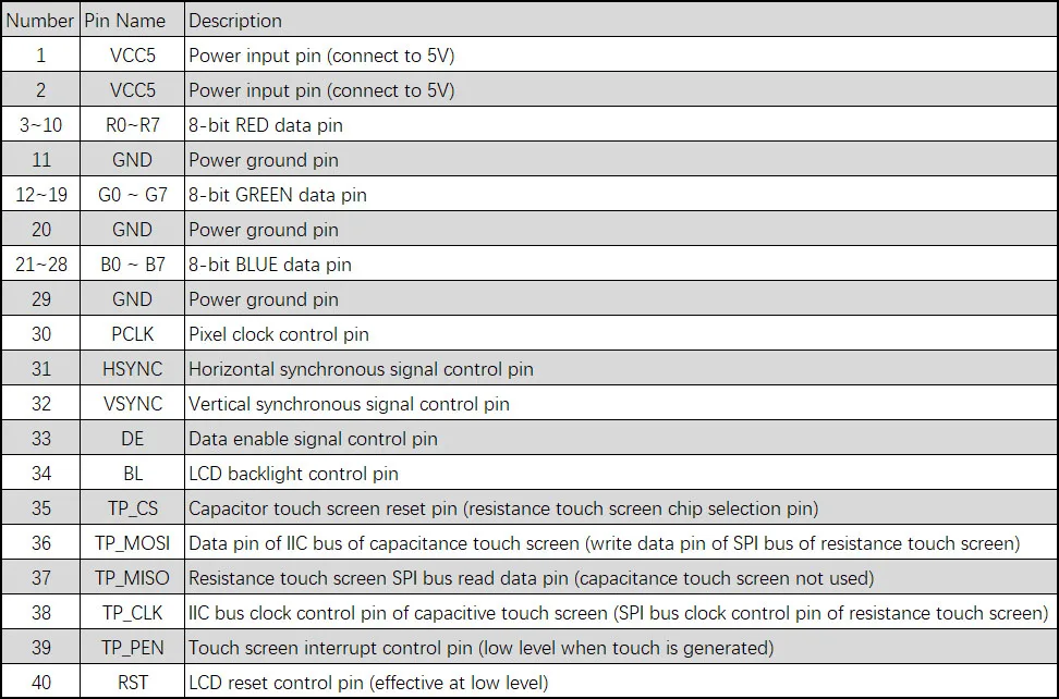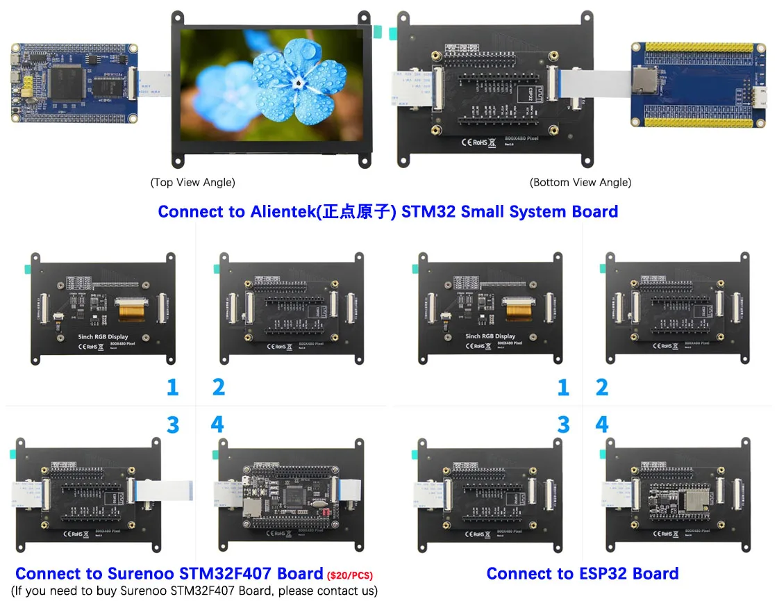 7,3 как подключить RGB LCD с другой платой разработки STM32/ESP32?