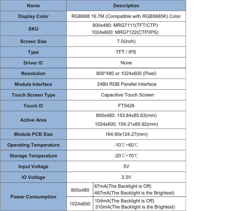 5.2.2SRG0700C2-1024600: 7,0 "1024*600 RGB интерфейс IPS ЖК-модуль.