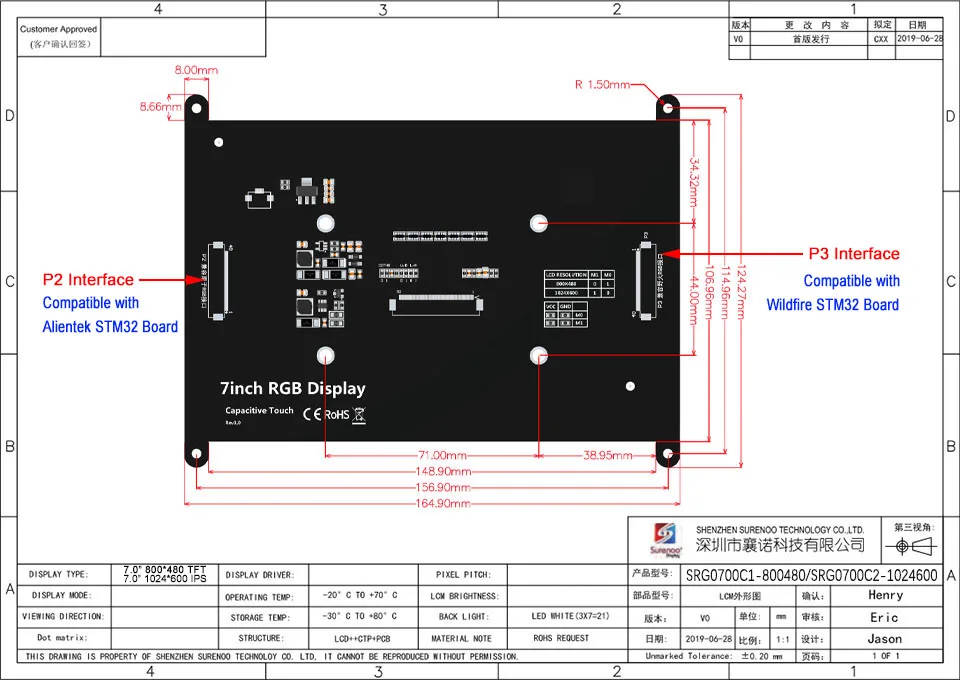 5.2.1SRG0700C1-800480: 7,0 "800*480 RGB интерфейс TFT LCD модуль;