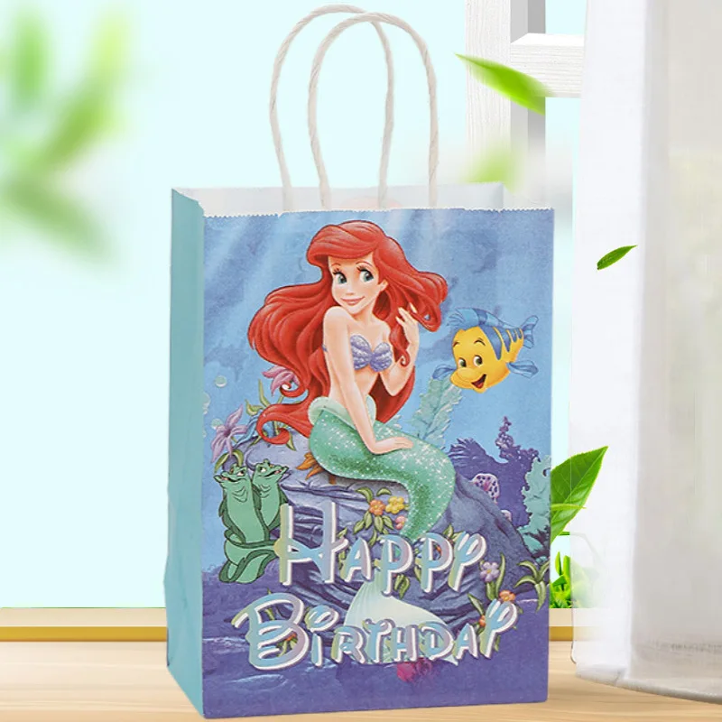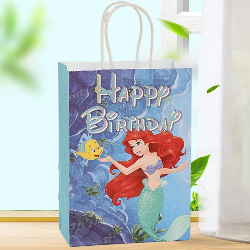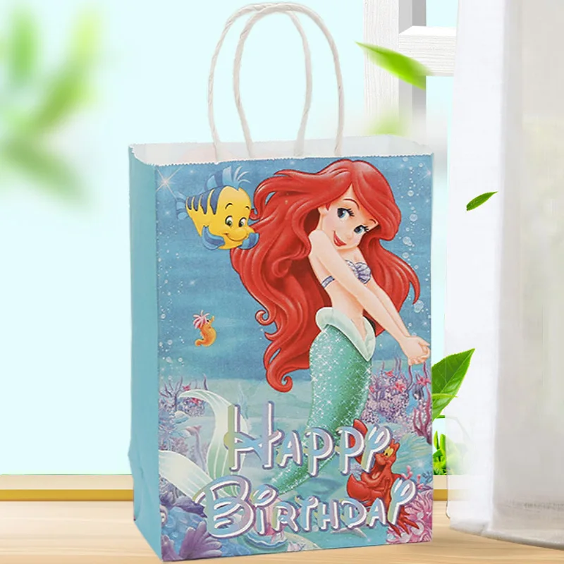 5/40Pcs Mermaid Ariel Gift Bag Mermaid Theme Birthday Gift Package Bag Under The Sea Happy Birthday Party Kraft Paper Bag