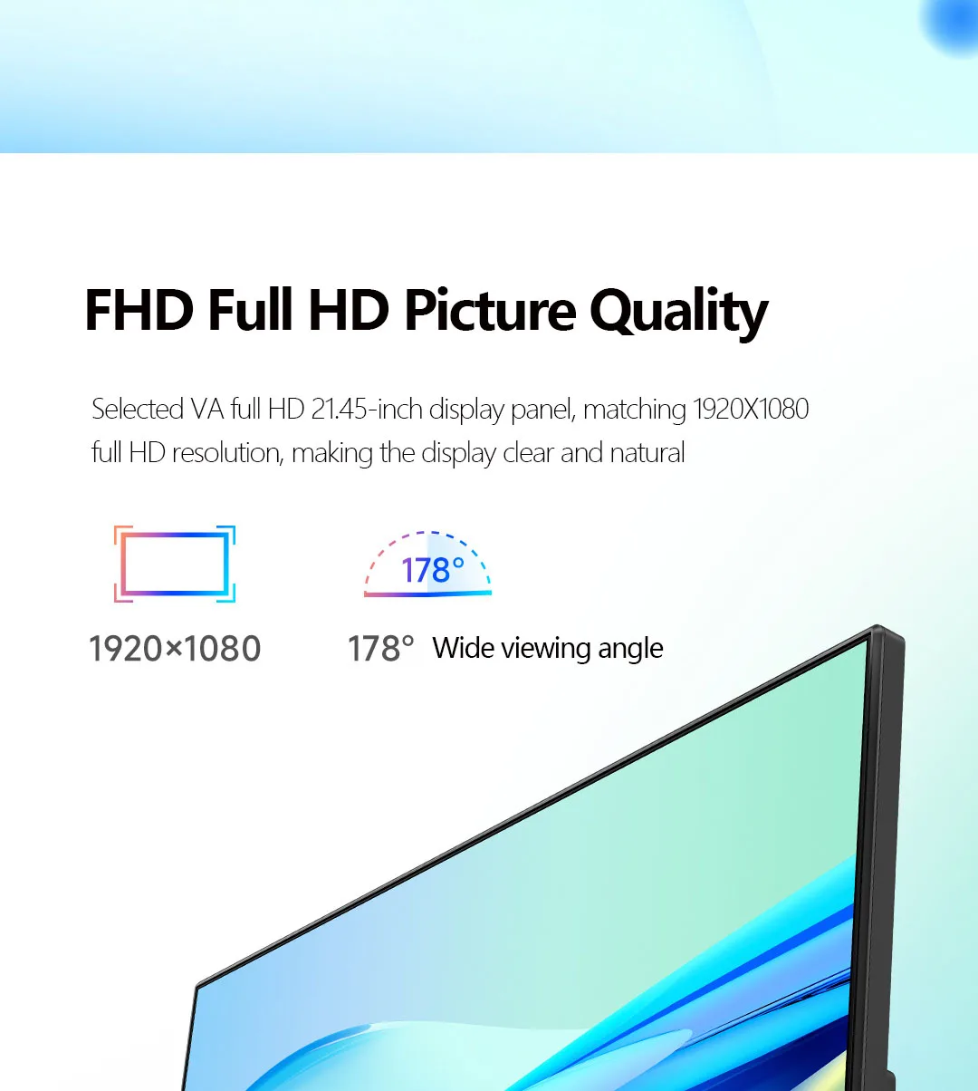 5. Панель VA, разрешение 1920*1080 HD, широкий угол обзора 178 °, чтобы сделать эффект экрана четким и естественным
